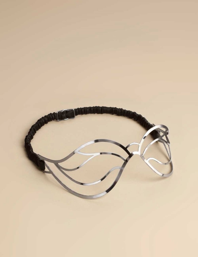 Всё внимание будет приковано только к вашему взгляду! Пленительная маска Candella темно-серого цвета, выполненная в изогнутых плавных линиях, визуально придает глазам миндалевидную форму как у кошечки. Маска фиксируется на голове с помощью мягкой шелковой резинки. Великолепная Candella придаст театральности в спальне и на светском рауте. Состав: латунь с родиевым покрытием.
