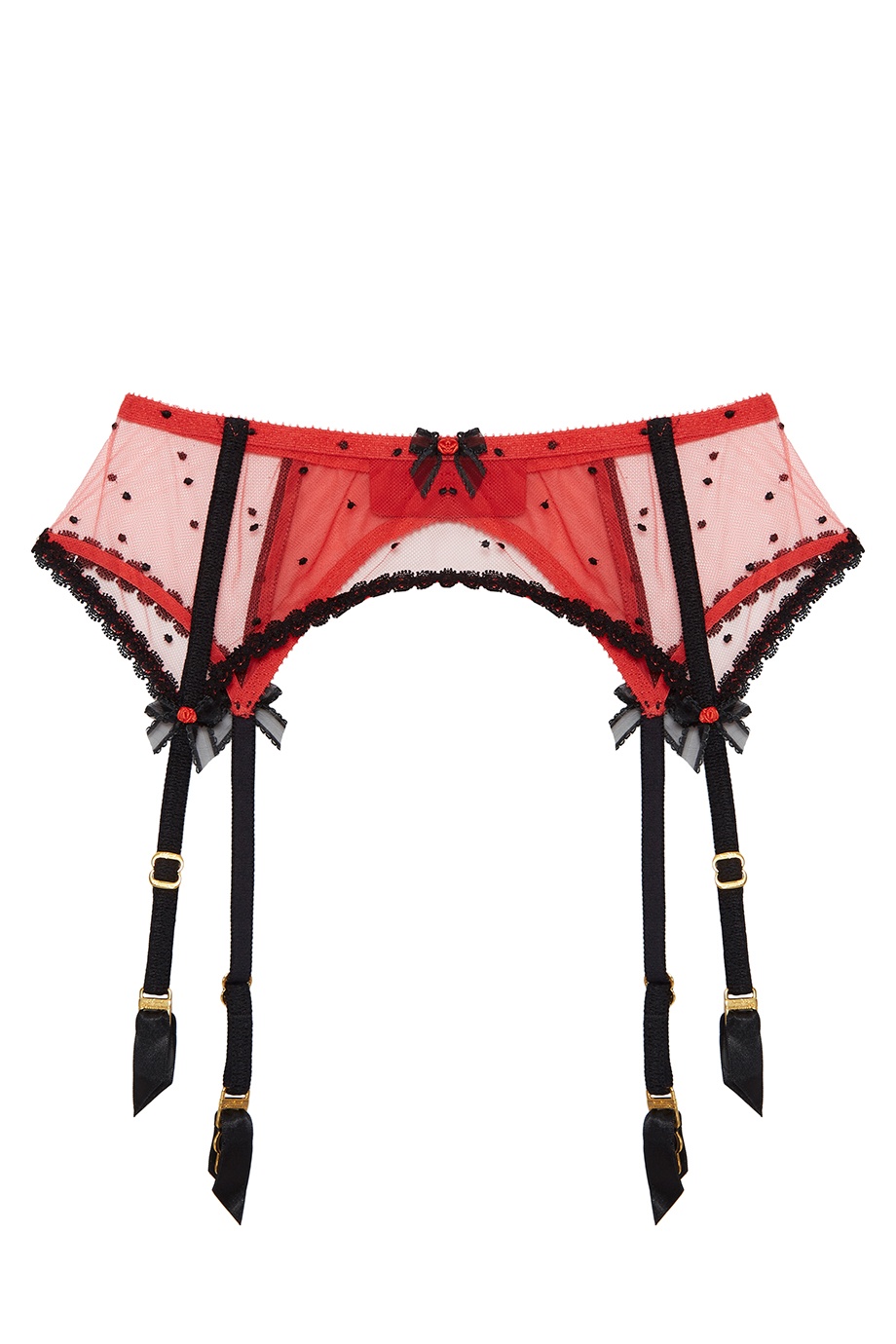 Смелая кокетливая Poppie - новая коллекция из полупрозрачного тонкого тюля с вышитым контрастным узором. Пояс с пажами украшен чёрной кружевной оторочкой. Бантик с красным бутоном в центре завершает образ.