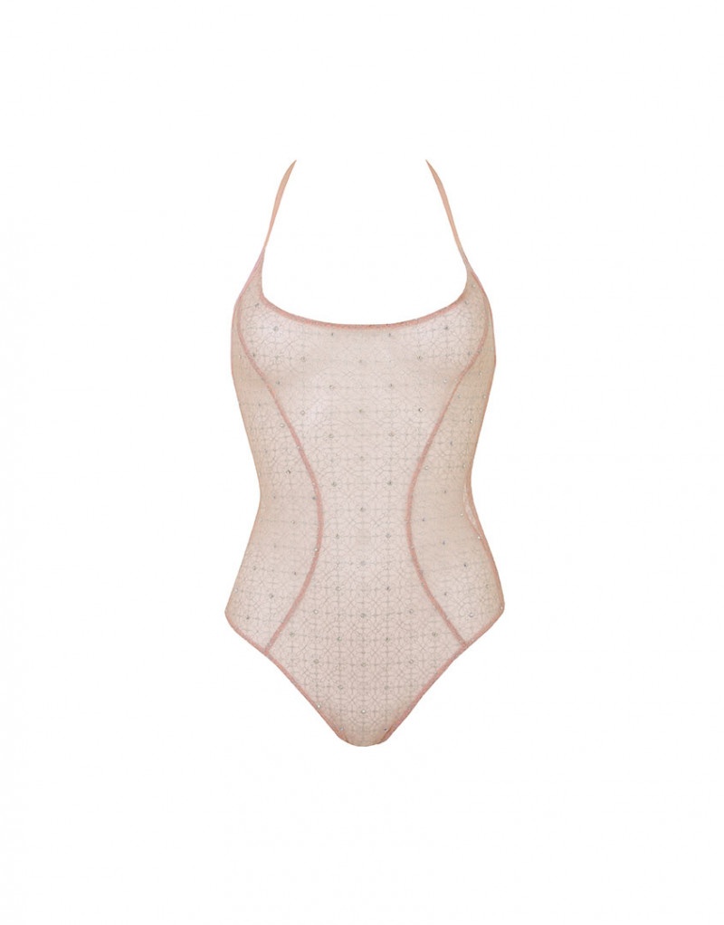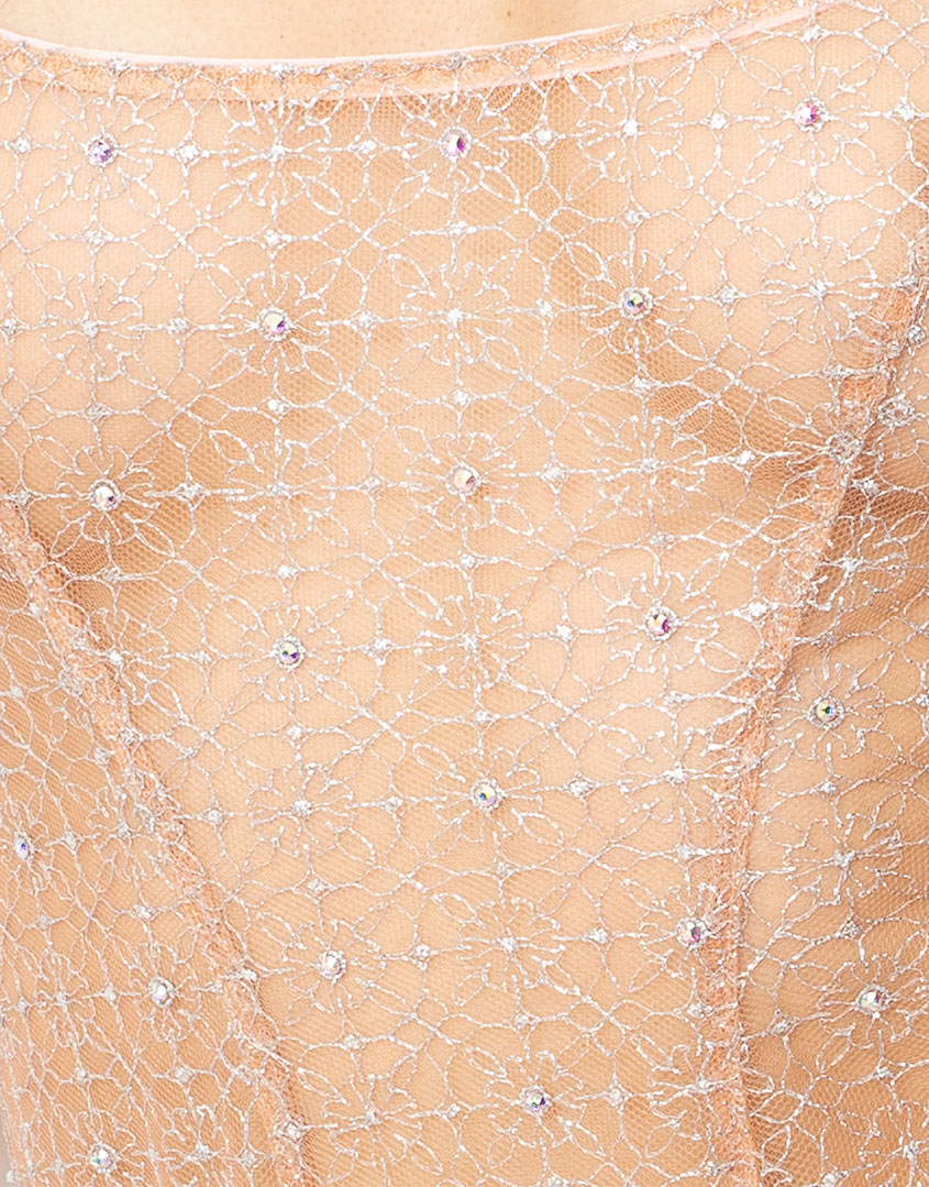 Продемонстрируйте свою блистательную натуру в Melony. Мерцающее боди в стиле балетных корсажей украшено швейцарской вышивкой пастельно-персикового оттенка, инкрустированной кристаллами. Перекрещивающиеся сзади бретели красиво обрамляют тело. Декоративные швы и функциональные кнопки завершают образ. Детали: регулируемые сзади бретели. Прозрачный материал. Материалы и уход: 100% полиамид. Вышивка: 56% полиамид, 44% металлизированная фибра. Рекомендована ручная стирка.