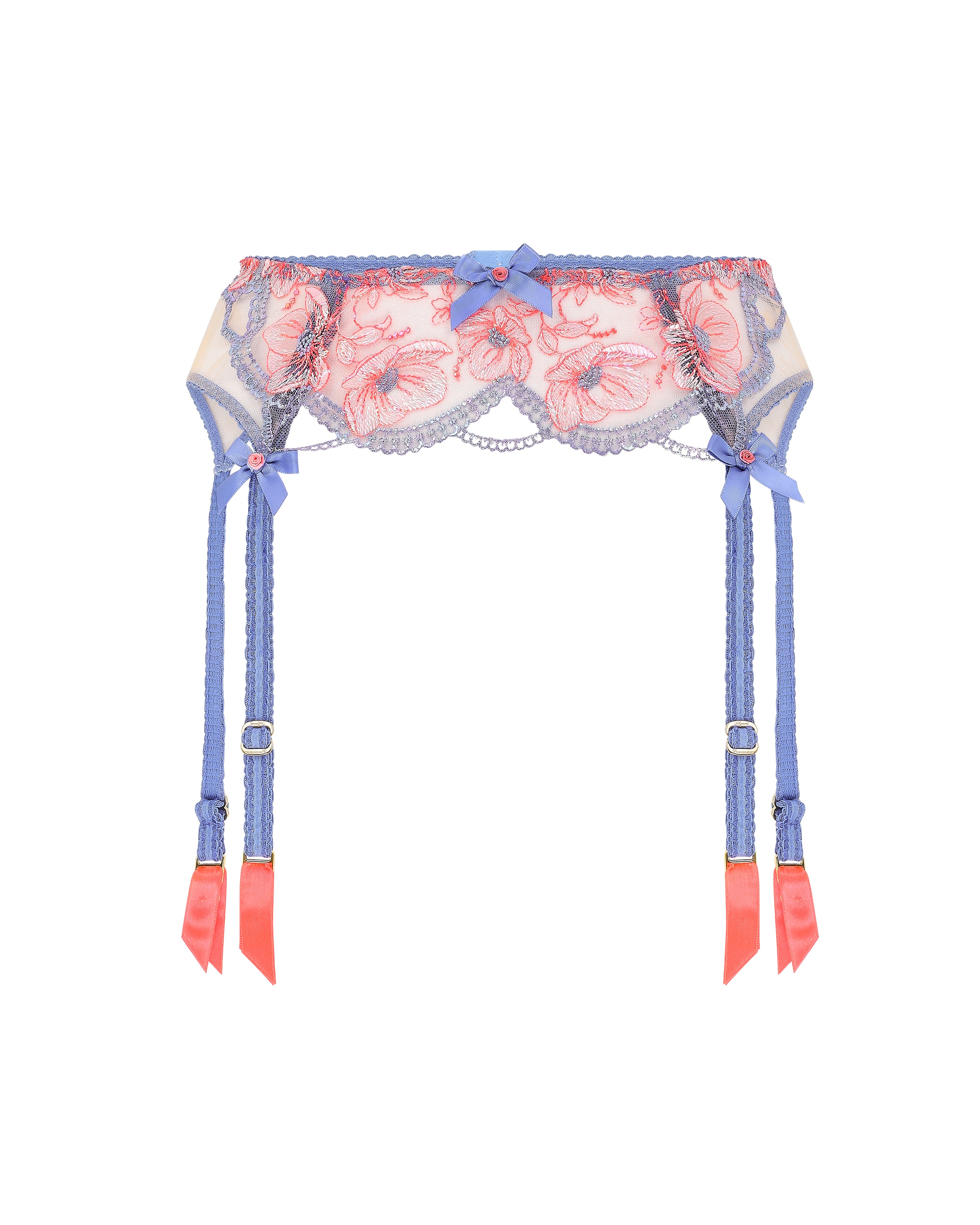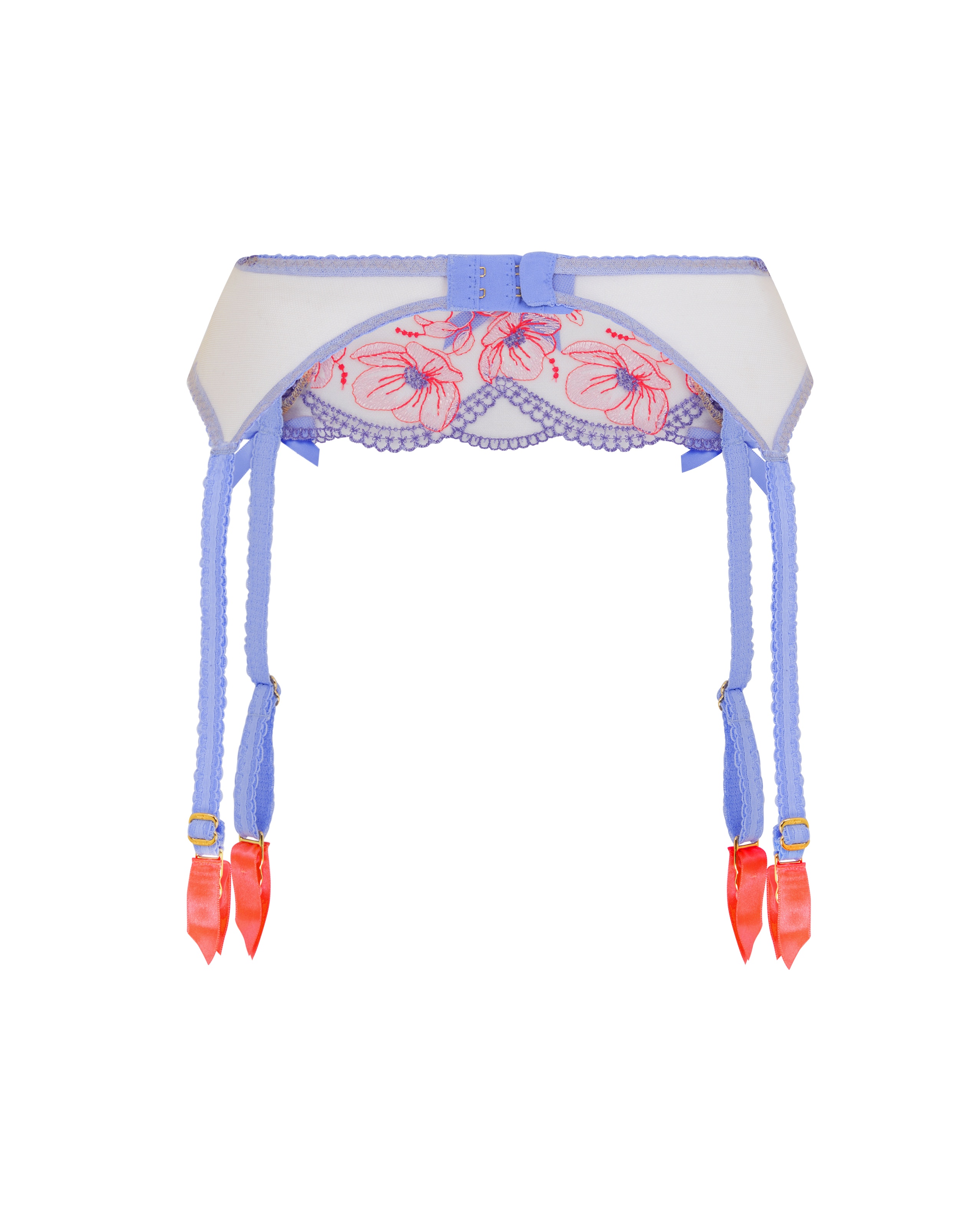 Пояс для чулок Winnette в голубых и оранжевых тонах, с изящной цветочной вышивкой, станет изюминкой вашего образа. Фурнитура на ремешках покрыта настоящим золотом. Сочетайте с остальными элементами коллекции для создания завершенного романтичного лука.