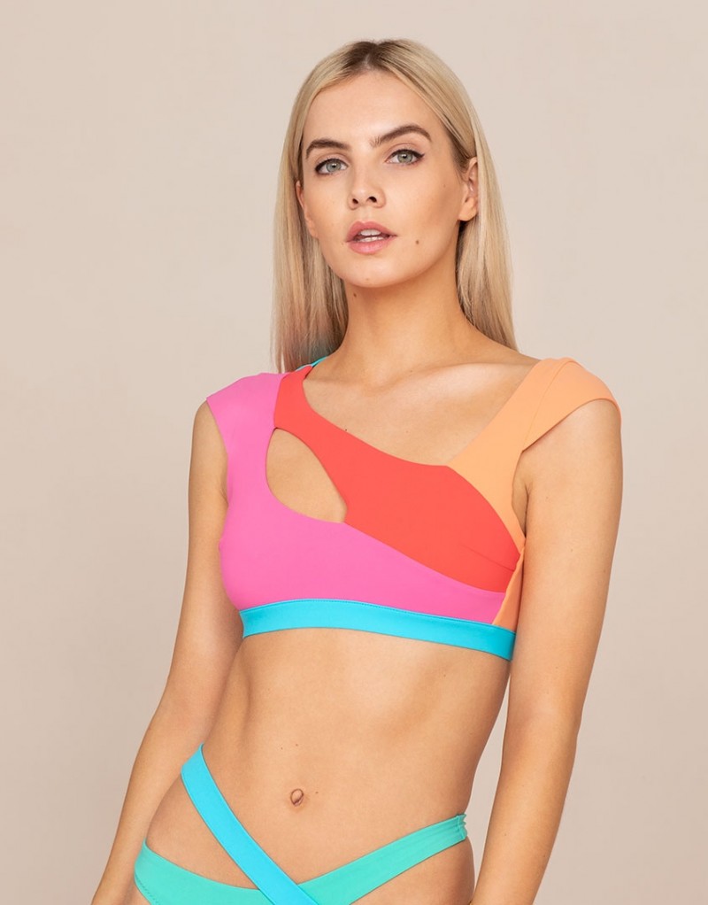 Добавьте цвета в ваш отпускной гардероб вместе с радужной коллекцией Izaro. Асимметричный бюстгальтер бикини с насыщенными пастельными разноцветными панелями дополнен дерзкими вырезами. - Сделан из итальянской ткани Материалы и уход: Розовая панель: 75% полиамид, 25% эластан. Красная панель: 75% полиамид, 25% эластан. Оранжевая панель: 75% полиамид, 25% эластан. Голубая отделка: 75% полиамид, 25% эластан. Рекомендована ручная стирка. Не отбеливать. Не замачивать. Бережно сушить. Не гладить.
