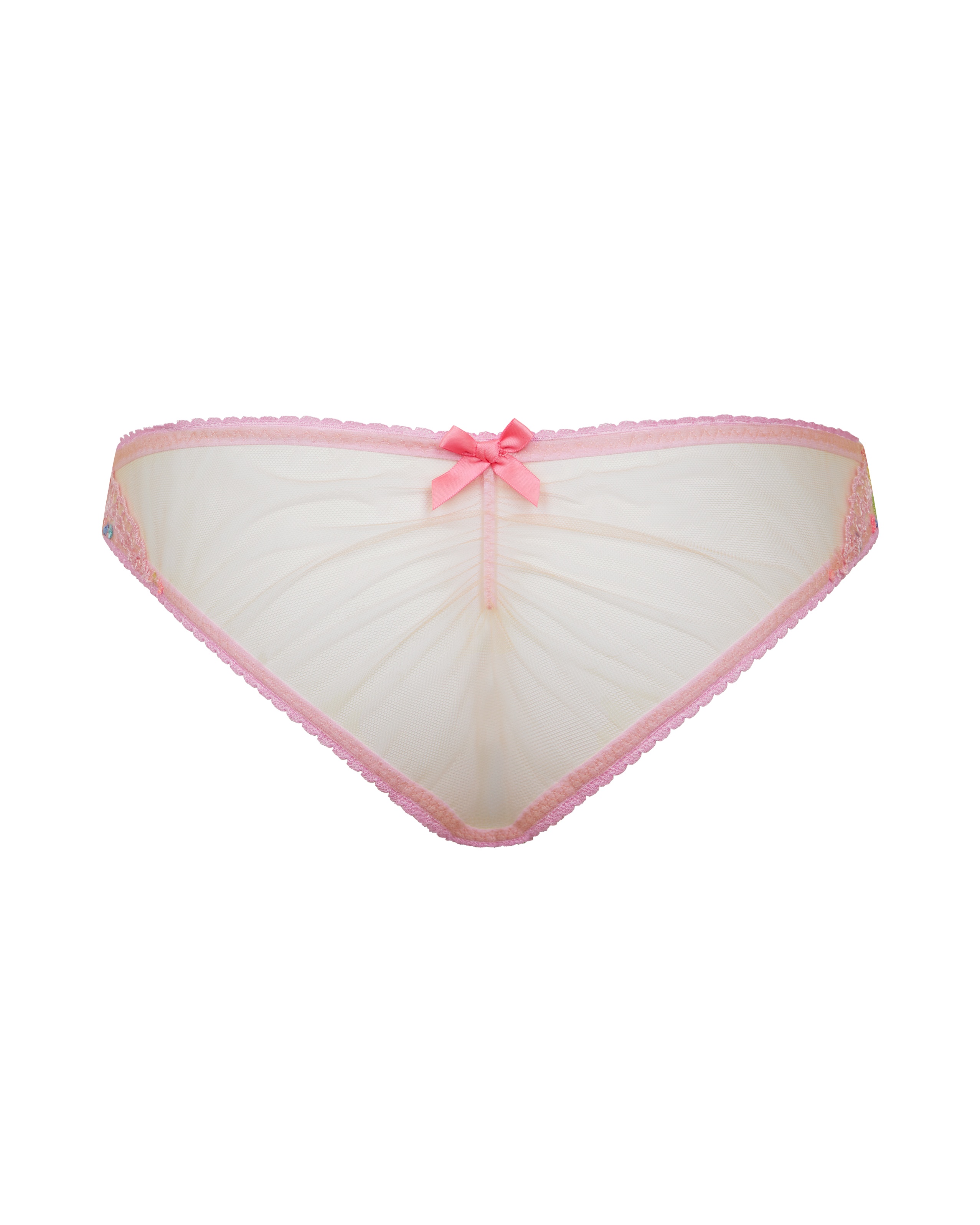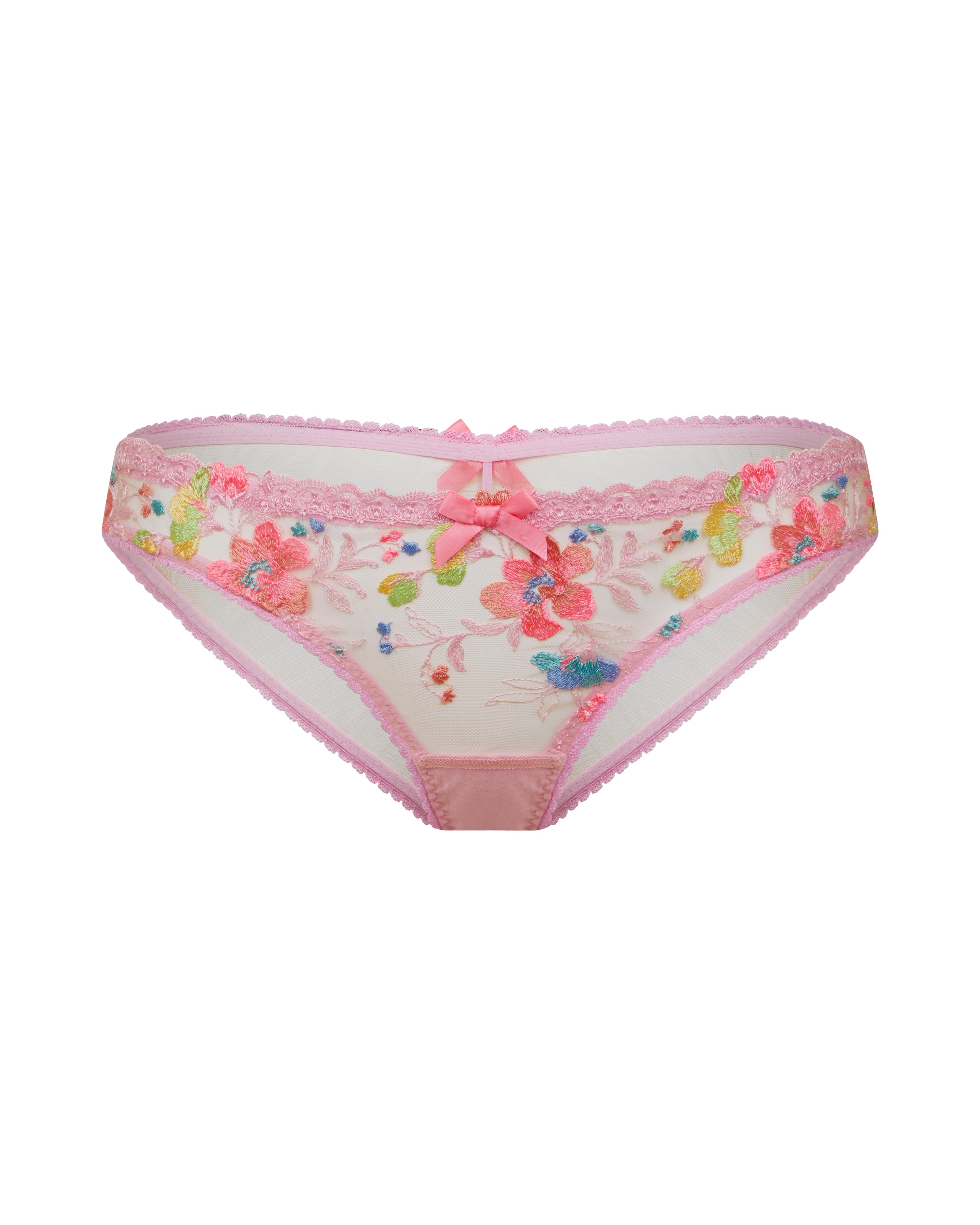Классические трусы Rixie розового цвета выполнены на основе прозрачного тюля и украшены цветочной швейцарской вышивкой. Ажурный зубчатый край по контуру модели. Идеальная основа для соблазнительного комплекта.