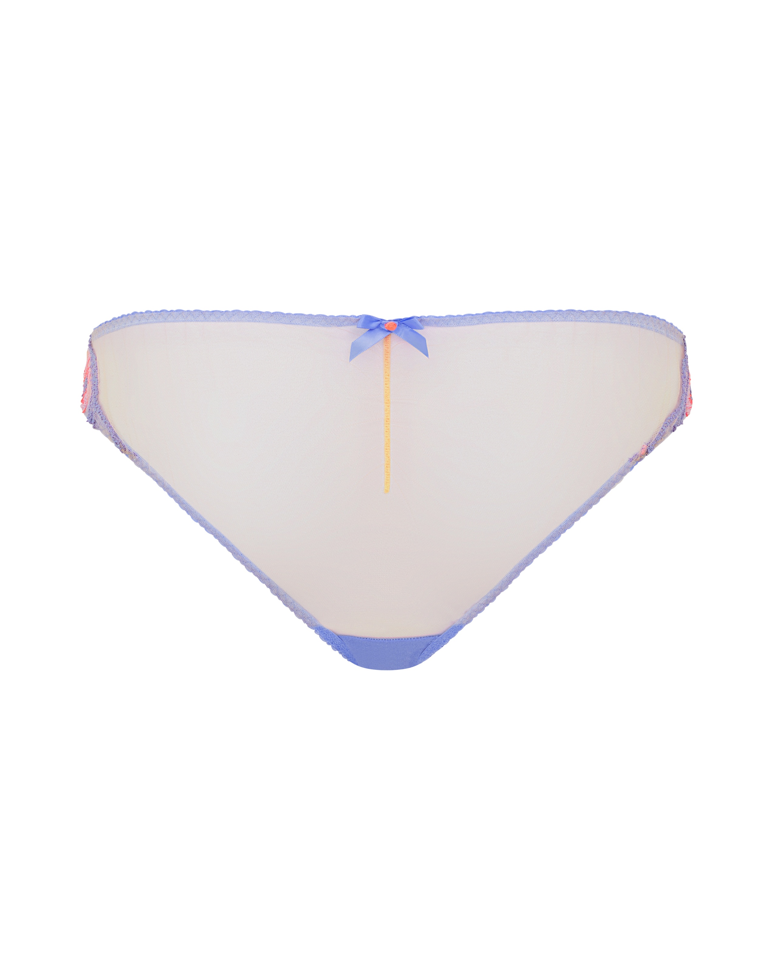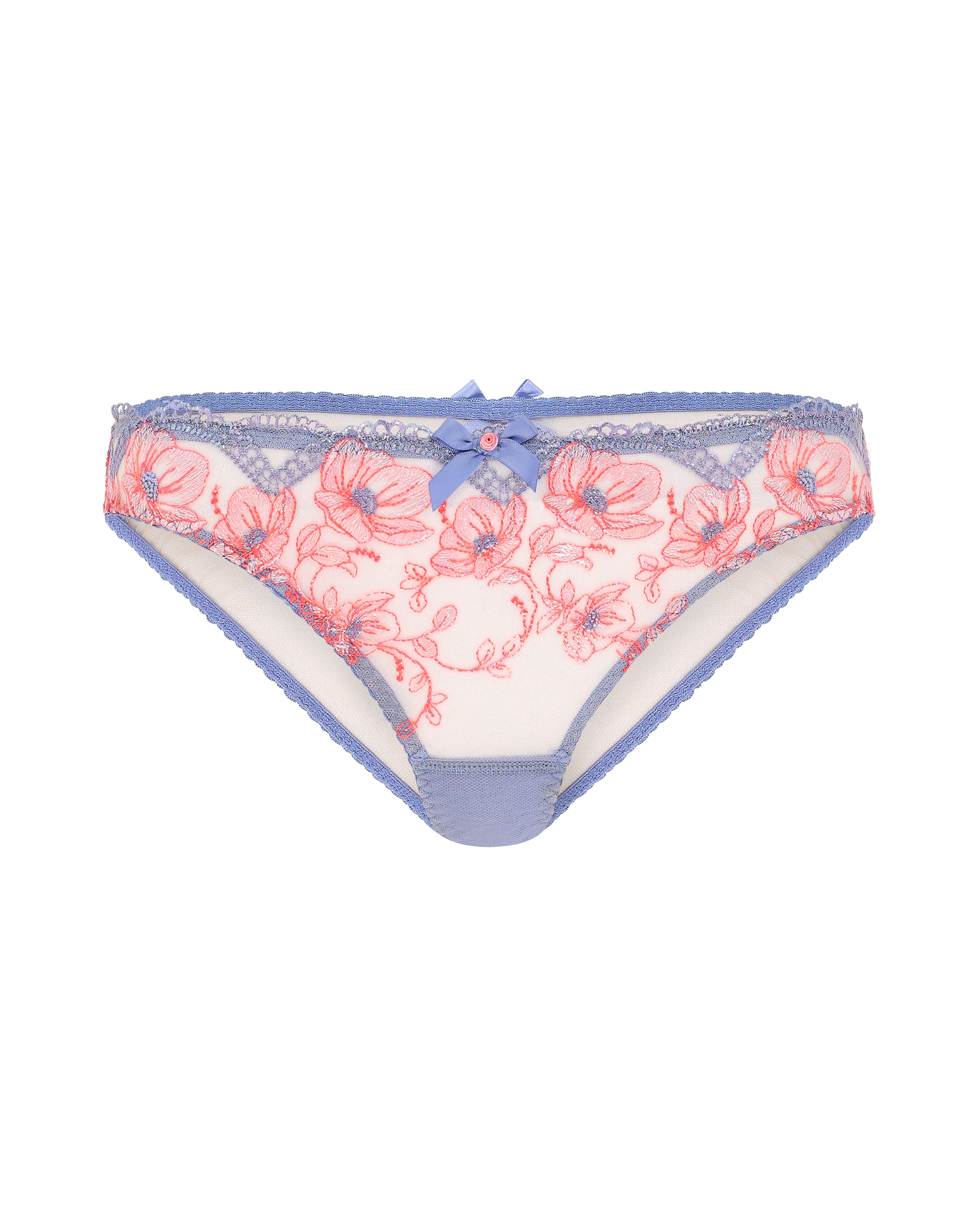 Классические трусы Winnette в голубом и оранжевом оттенках, с цветочной вышивкой и мерцающим эффектом, имеют прозрачную заднюю часть с игривыми сборками. Идеально дополняют остальные изделия коллекции Winnette.