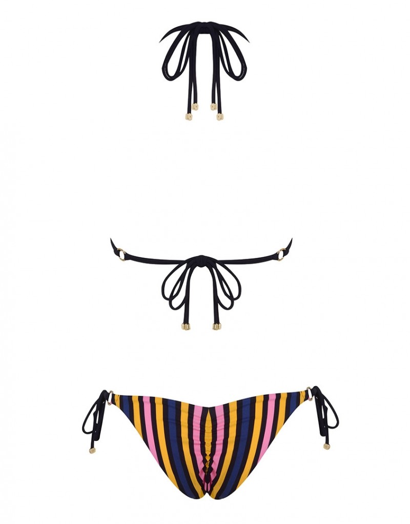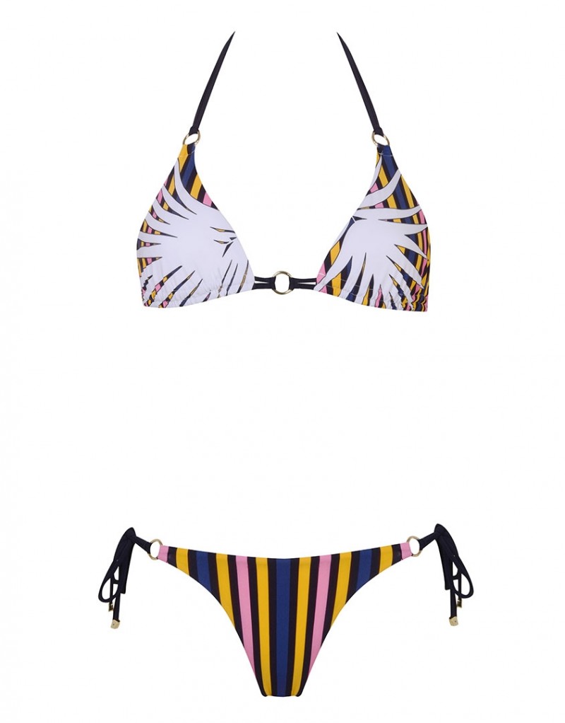 Понежьтесь на солнышке в Malisa. Плавки бикини из гладкой ткани украшены оригинальным принтом Agent Provocateur в полоску с пальмовыми листьями. Завязки по бокам позволяют регулировать ширину плавок. Золотистая фурнитура завершает очаровательный образ. Детали: сочетайте с бюстгальтером бикини Malisa.