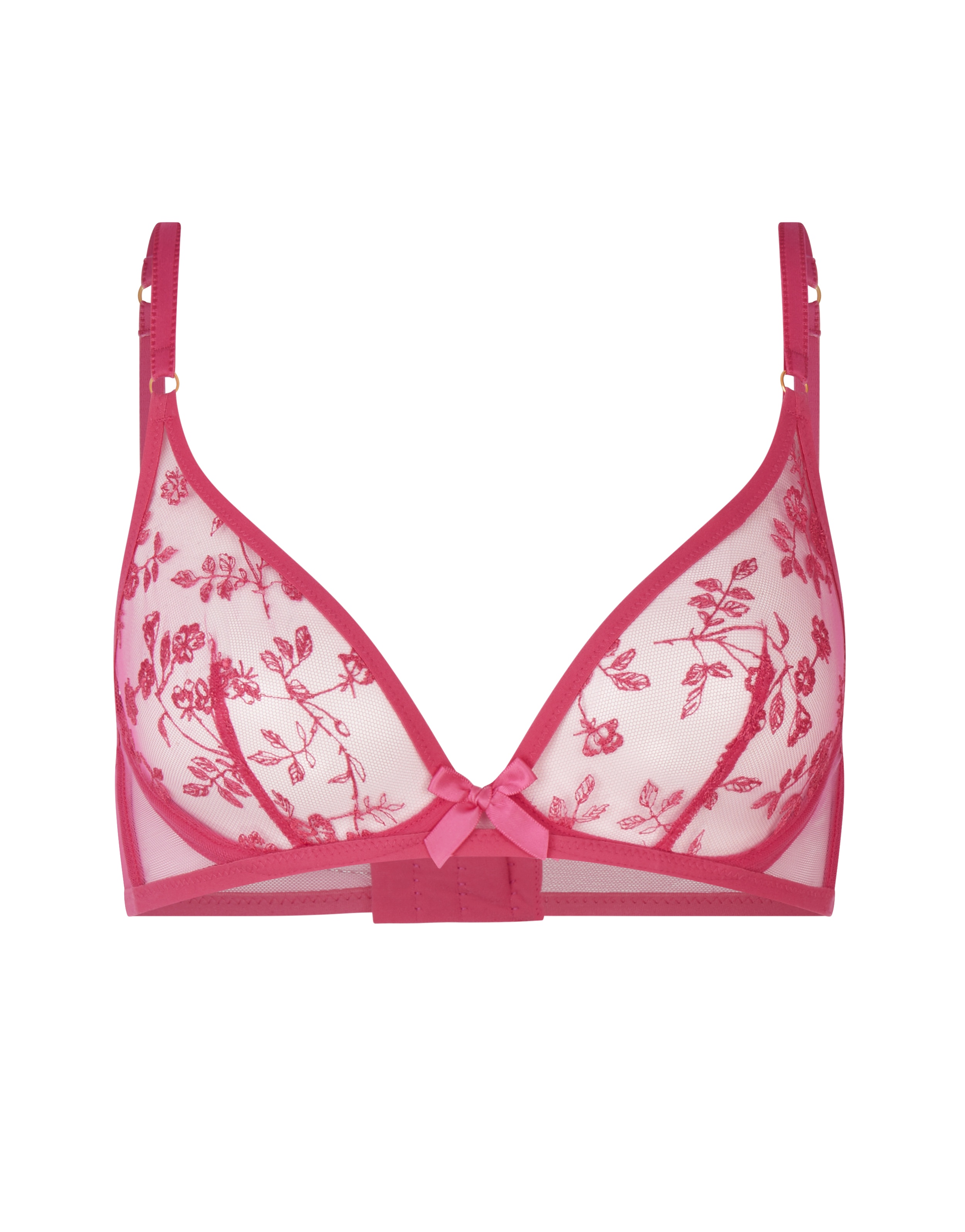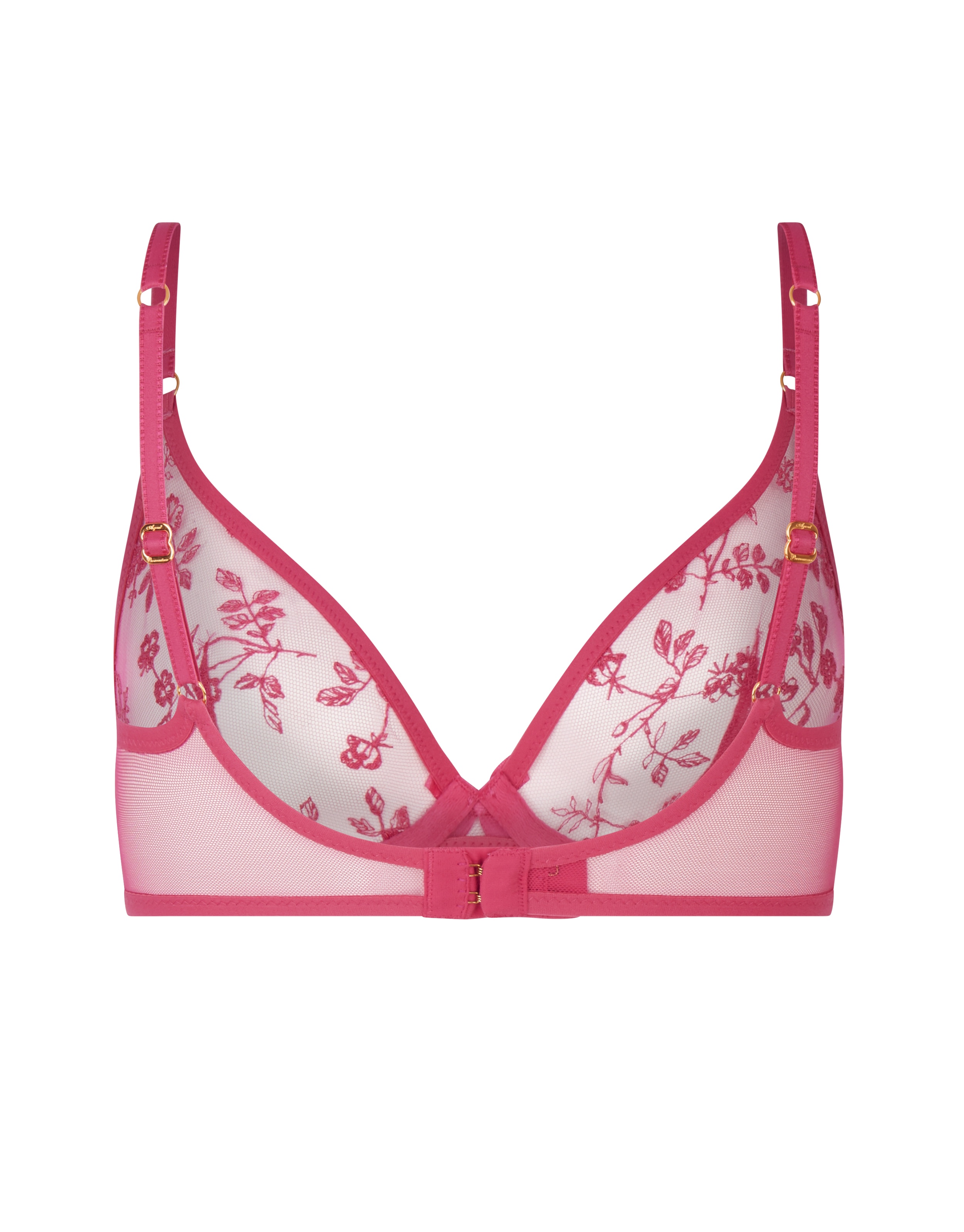 Для модели Henrieta мастера бренда выбрали полупрозрачный тюль розового оттенка. Мягкие чашки с поддержкой на косточках украсили вышивкой с растительным мотивом. Плавная линия декольте обрамлена эластичными лентами. Центр увенчан атласным бантом — фирменной чертой коллекций AP.