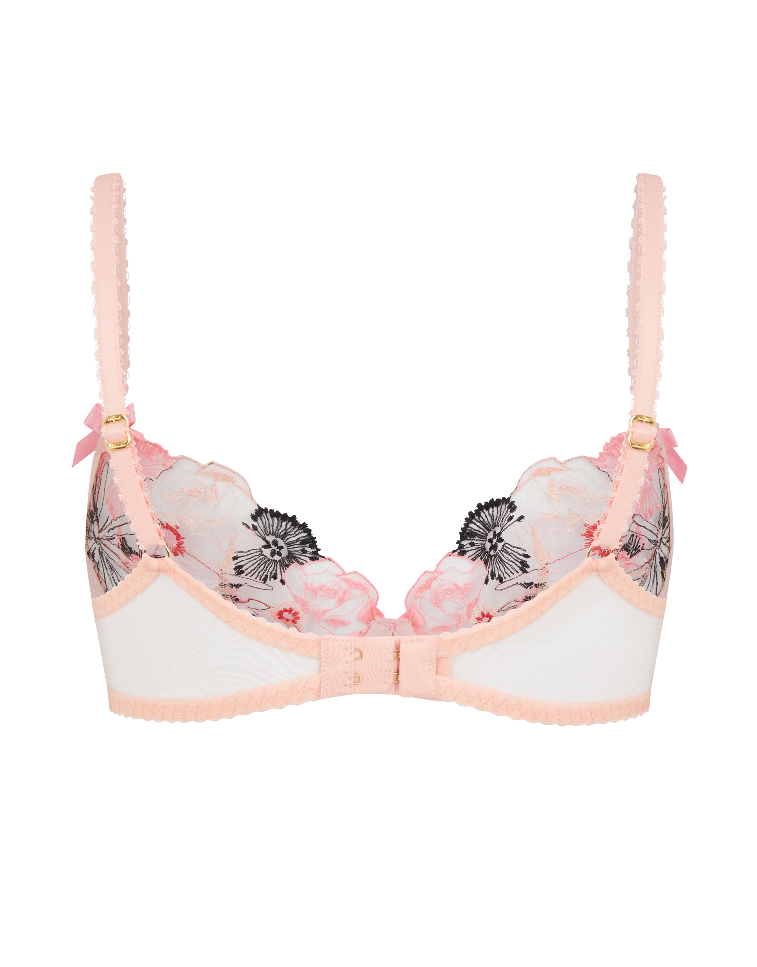 Бюстгальтер из коллекции Zuri с глубоким вырезом сделан из тонкого тюля с цветочной вышивкой, разработанной в Австрии. Мягкая модель без подкладки обеспечивает усиленную поддержку и эффектное подчеркивание груди.