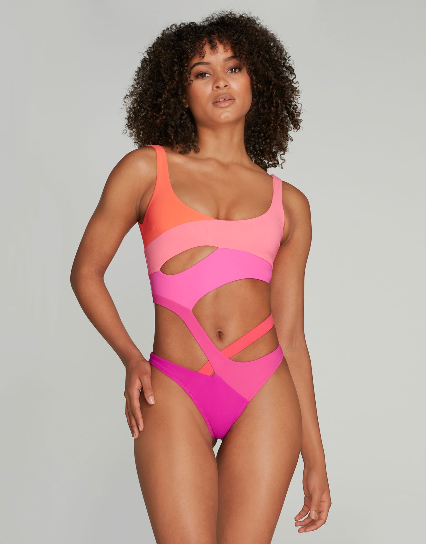 Монокини Izaro выполнено из матового плотного трикотажа. Асимметричная композиция в стиле колорблок подчеркнута сочетанием розовых тонов. Углубленный овальный вырез спереди гармонирует с конфигурацией выреза на спине. Модель без застежек и пряжек легко надевается.