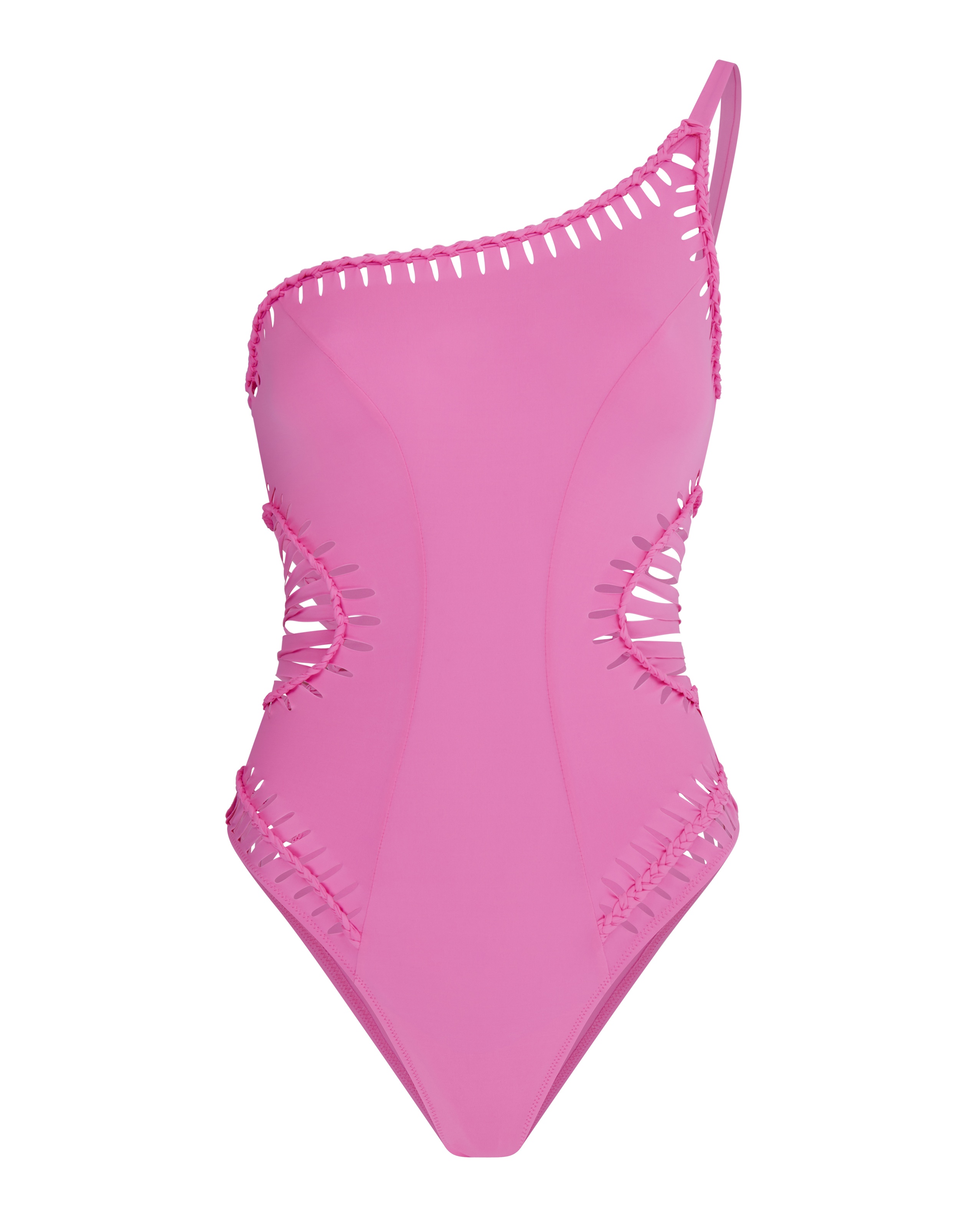 Изготовленный из роскошной матовой итальянской ткани для купания, розовый слитный купальник Sofi на одно плечо является воплощением элегантности и стиля. Ручная плетеная отделка придает изделию уникальный характер. Лазерные разрезы создают эффект стройной фигуры в форме песочных часов, в то время как высокий крой ног визуально удлиняет их. Этот купальник – идеальный выбор для тех, кто ищет сочетание комфорта и современного дизайна.