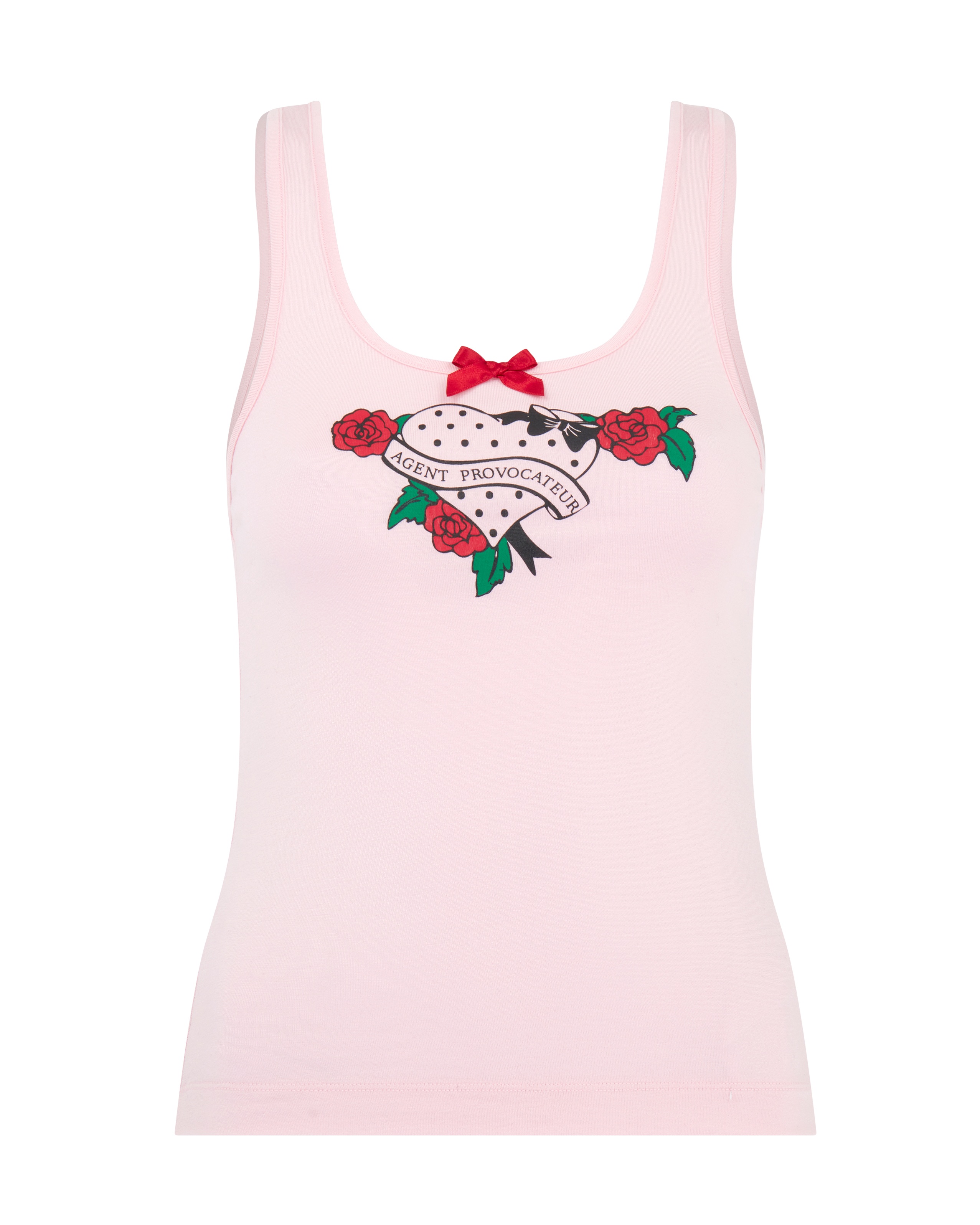 Розовый топ Forever выполнен из мягкого трикотажа и украшен принтом в винтажном стиле, напоминающим татуировки. Дополните образ подходящими трусами из коллекции для милого и уютного образа перед сном.