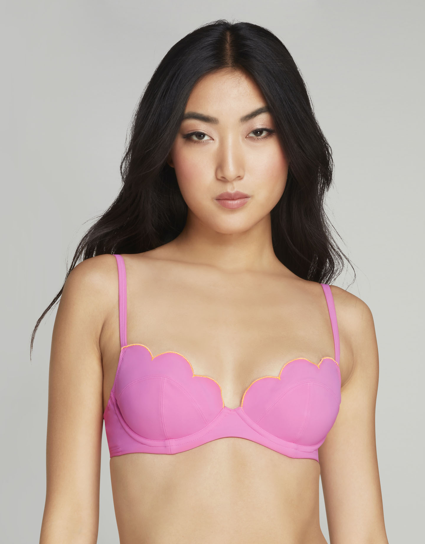 Лиф купальника Lorna вдохновлен одной из классических коллекций бренда. Узнаваемая фигурная линия декольте окантована контрастной нитью австрийской вышивки. Классическая поддержка на косточках подойдет обладательницам разных размеров. Сзади расположены регуляторы бретелей и фирменная плоская пряжка с гравировкой AP.