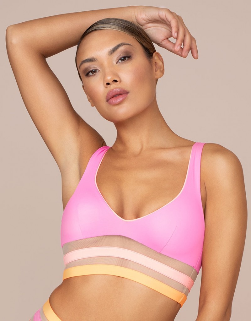 Ощутите летний зной с Zenaya - пляжной коллекцией, в которой невероятно насыщенные оттенки сочетаются с изящными линиями. Розовый бюстгальтер бикини с формованными мягкими чашками и глубоким декольте обрамлен снизу сеткой и эффектными неоновыми полосками, создающими спортивный силуэт. Детали: - Эффектная модель из эластичной ткани Материалы и уход: 80% полиэстер, 20% эластан. Подкладка: 88% полиэстер, 12% эластан. Рекомендована ручная стирка.