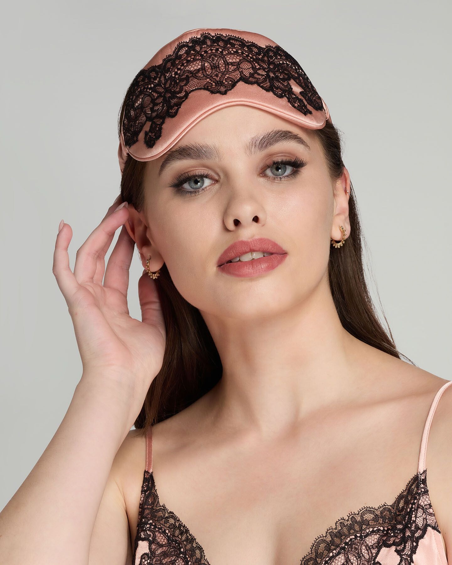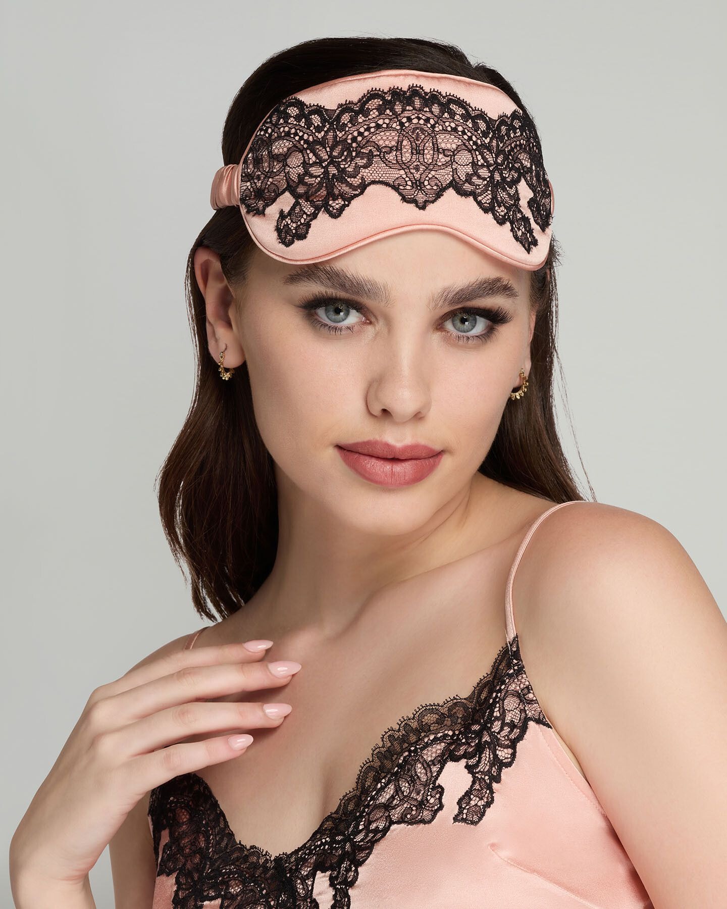 Amelea - роскошная коллекция одежды для дома в винтажном стиле, выполненная в классических цветах Agent Provocateur. Маска для сна из розового шелкового сатина дополнена резинкой с присборенной тканью. Спереди маска украшена контрастным черным французским кружевом. Эластичная резинка для комфортной носки.