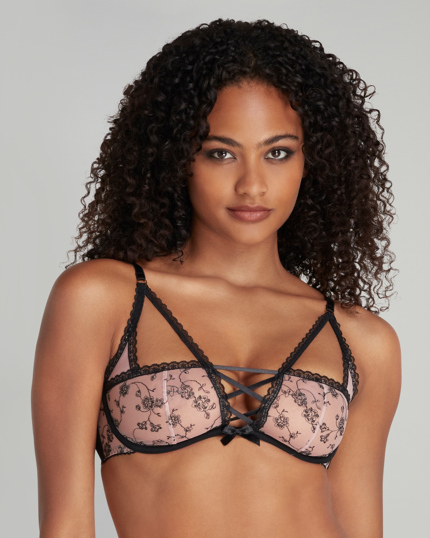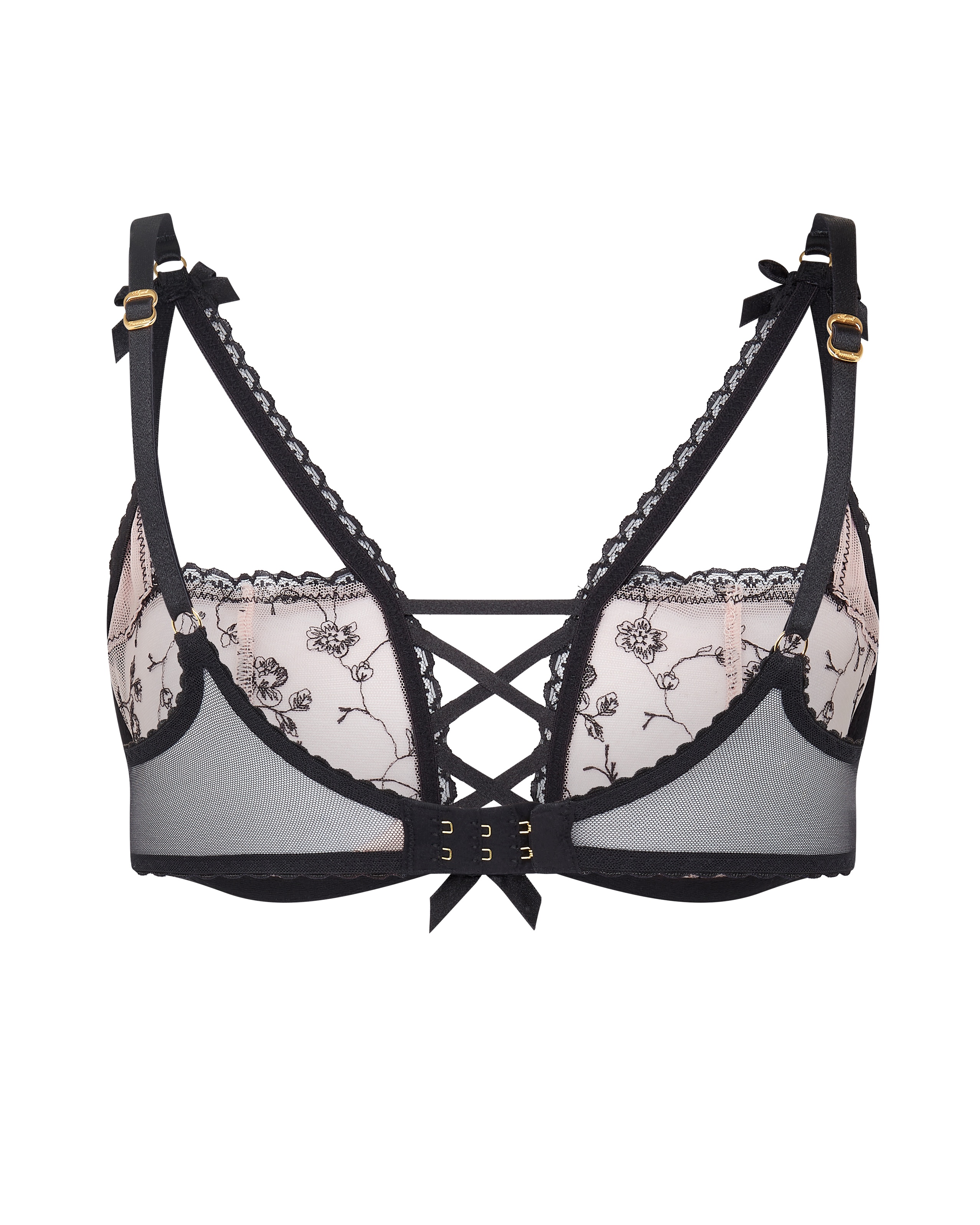 В коллекции Rosaleen бюстгальтер с мягкими чашками украшен нежным кружевом, цветочной вышивкой и атласными лентами, которые подчеркивают изящные вырезы. Завершите образ поясом и трусами этой коллекции.