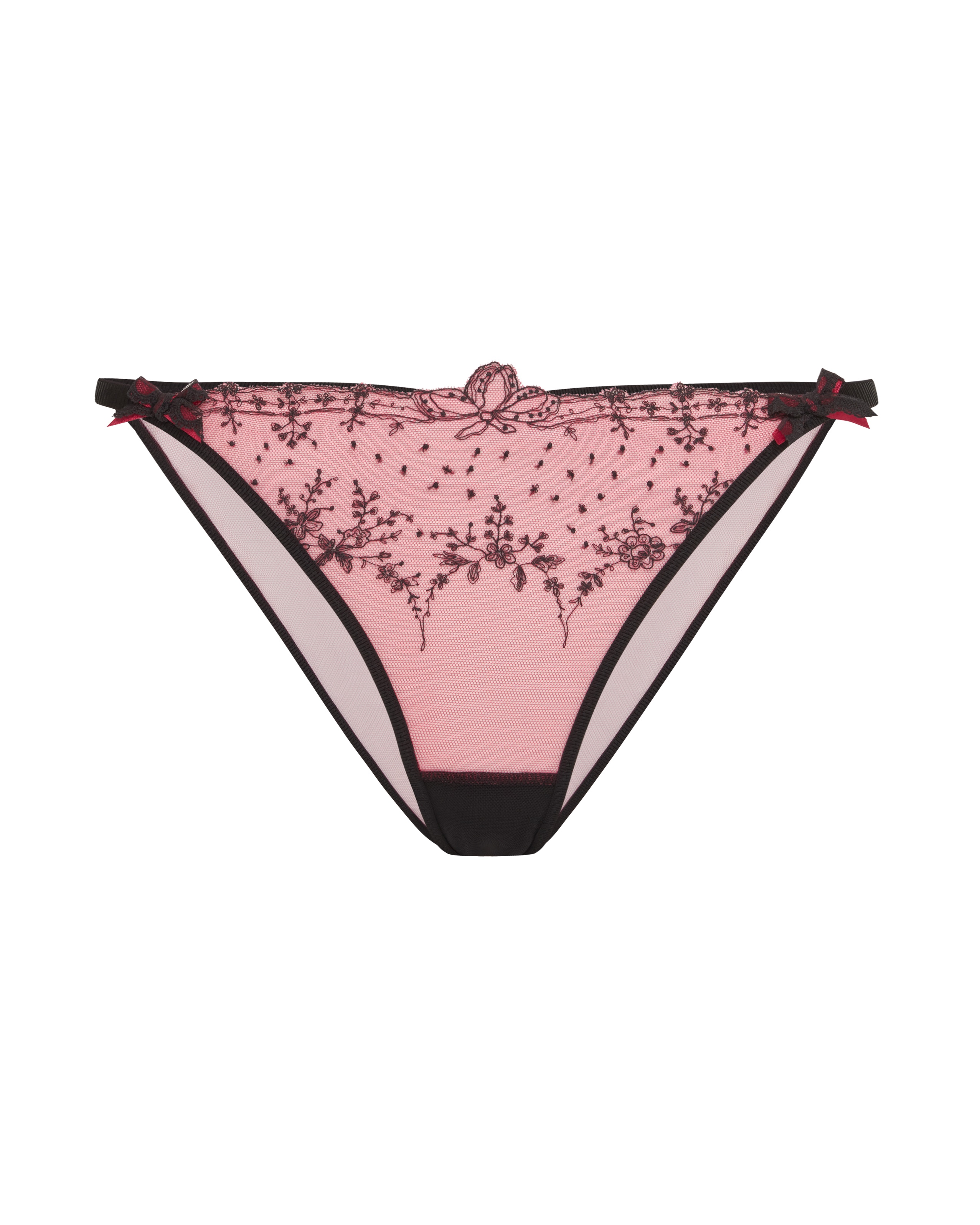 Классические трусы Graice розово-черного цвета сочетают яркий розовый тюль и черную строчку, дополняя сложную цветочную вышивку. Баланс между утонченностью и откровенностью, который раскрывается в коллекции Graice.