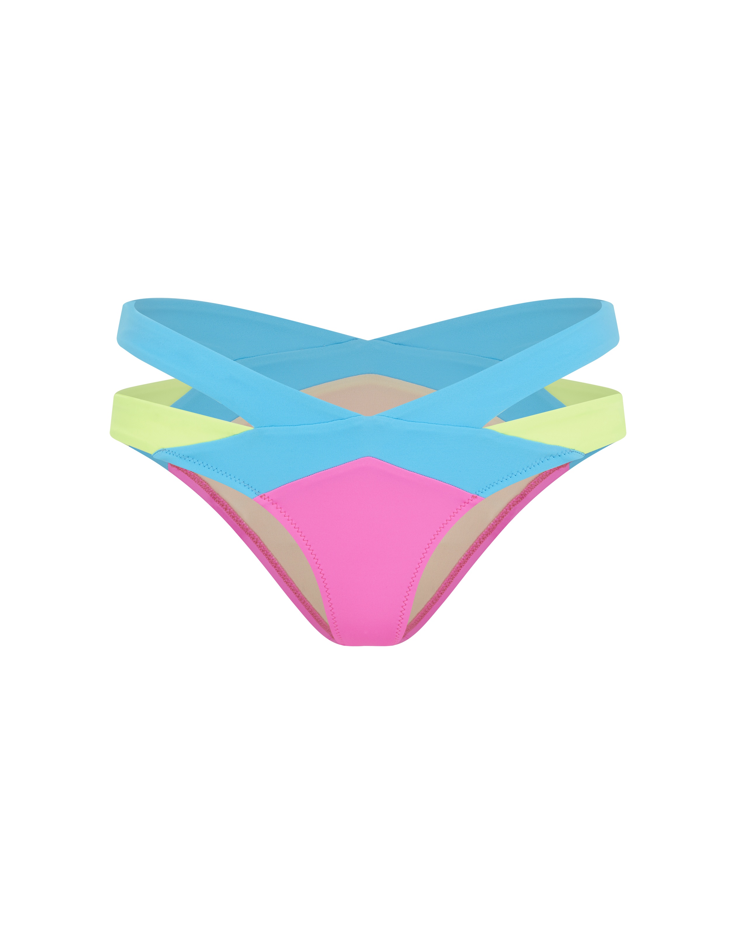 Неоновые плавки Mazzy в голубом, розовом и желтом цветах сделаны из экологичной ткани ECONYL® из Италии. Бандажный дизайн сочетается с эффектными вырезами на бедрах. Сочетайте с подходящим топом Mazzy для привлекающего внимание пляжного образа.
