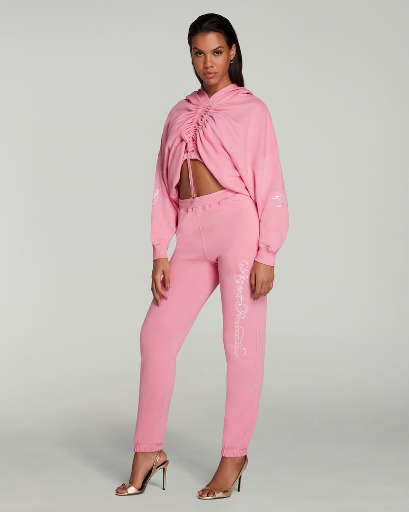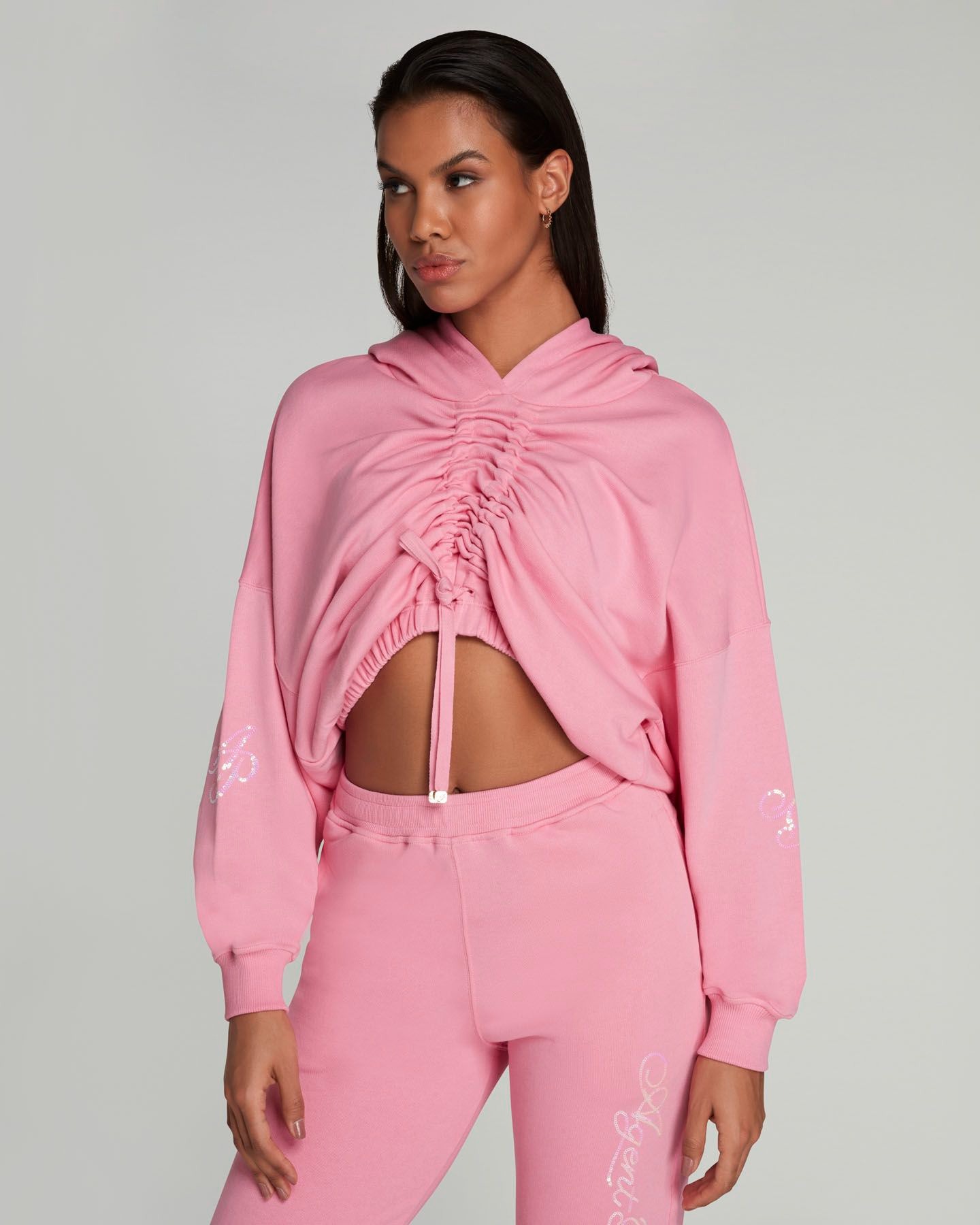 Это розовое худи Rayley свободного кроя и со стильными рюшами воплощает в себе суть спортивного стиля luxe. Модель пошита из 100% чистого органического хлопкового джерси. Худи дополнительно украшен блестящим логотипом "Agent Provocateur" из пайеток, добавляющим нотку гламура к повседневному образу. Идеально подходит для расслабления после тренировки или носки в свободное время.