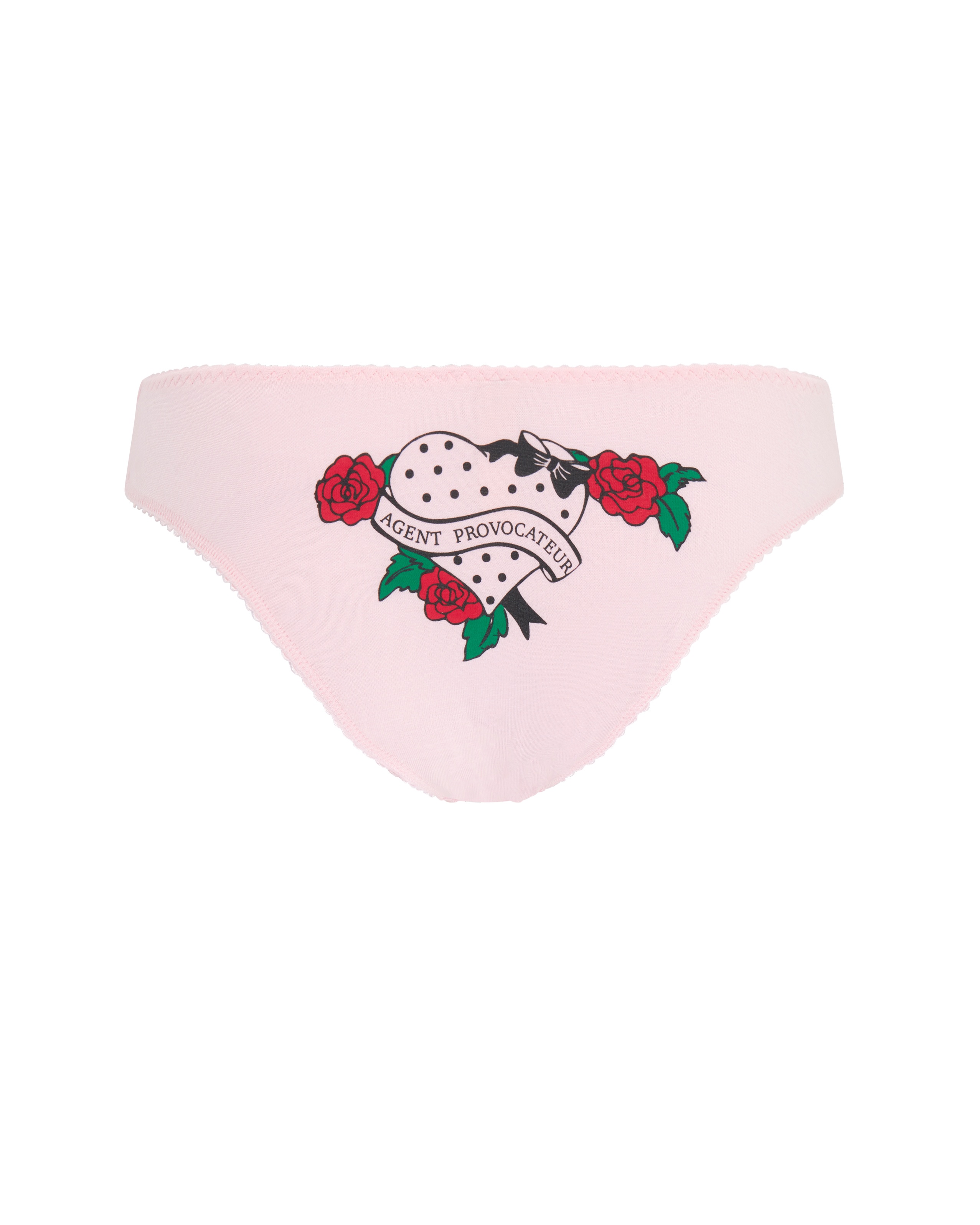 Классические трусы Forever в нежно-розовом оттенке изготовлены из мягкого джерси и декорированы принтом в стиле ретро-тату на задней части. Дополните комплект подходящим топом для уютного вечернего образа.