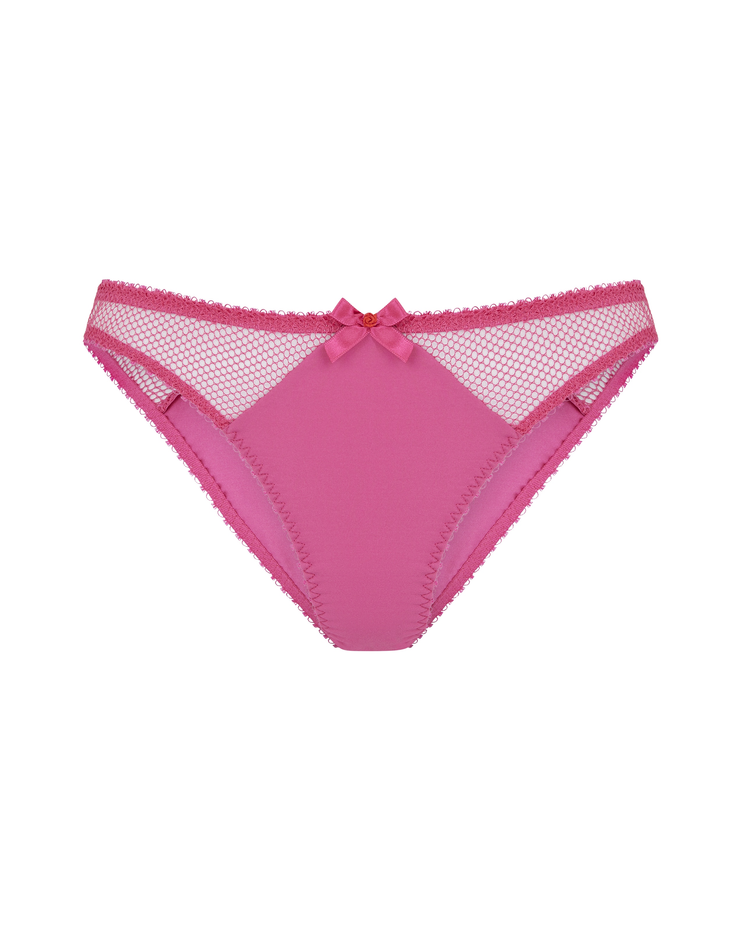 Классические трусики-брифы Raiven подойдут как для повседневного образа, так и дополнят романтический комплект с бюстгальтером и поясом для чулок. Модель в ярко-розовом цвете выполнена из комбинированных материалов — центральная и задняя части модели сшиты из прозрачного эластичного материала, а боковые части из сетки. Края окантованы ажурными тесемками.