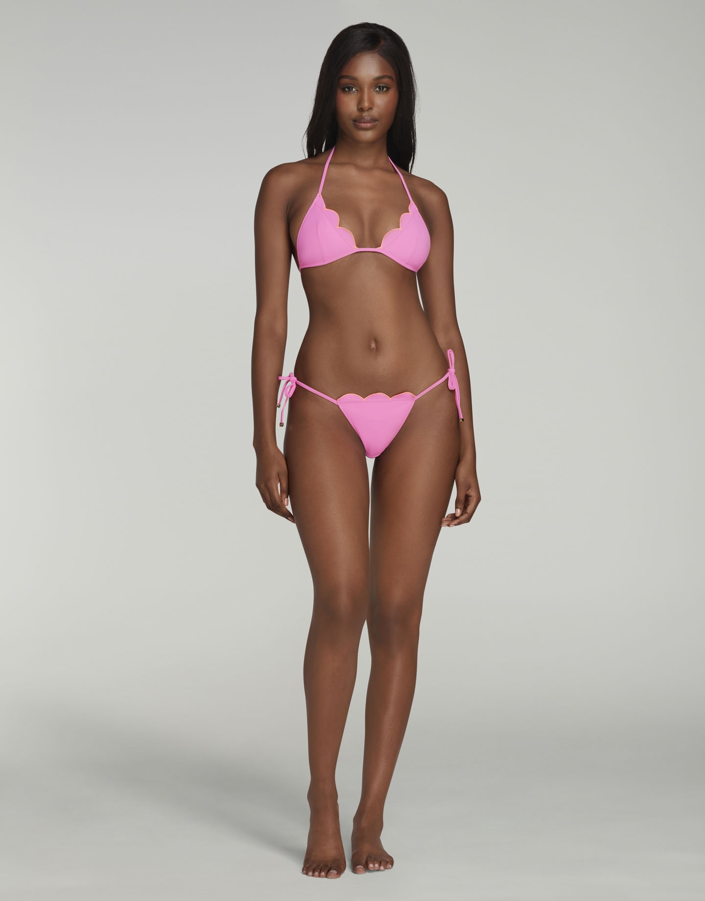 Классические бикини в интерпретации легендарной коллекции Lorna воплощены в розовом цвете. Матовая текстура трикотажа для плавания подчеркнута текстурной вышивкой на фигурных срезах. Тонкие завязки по бокам позволяют создать оптимальную посадку. Золотистые наконечники, украшенные гравированным логотипом, завершают игривую модель.