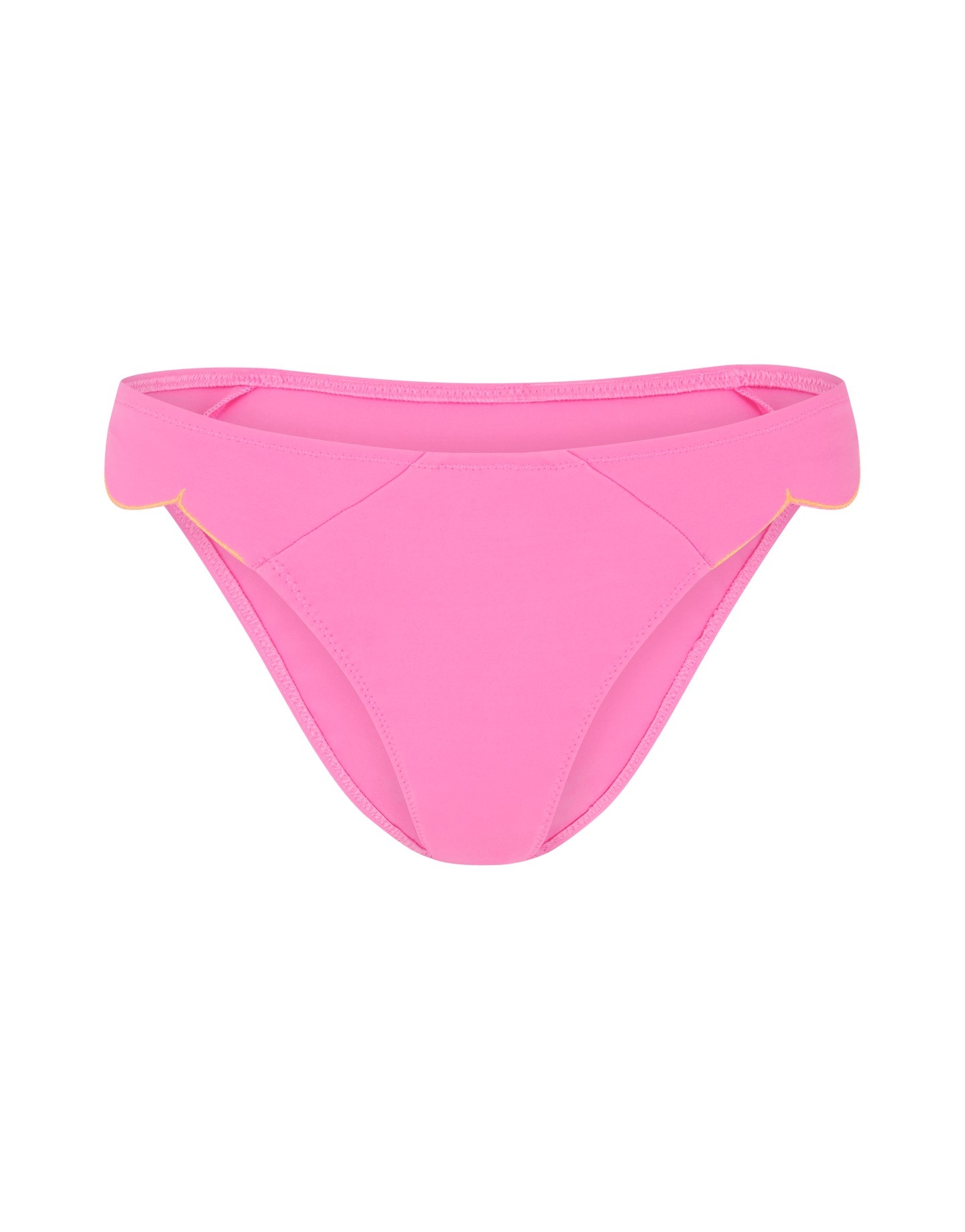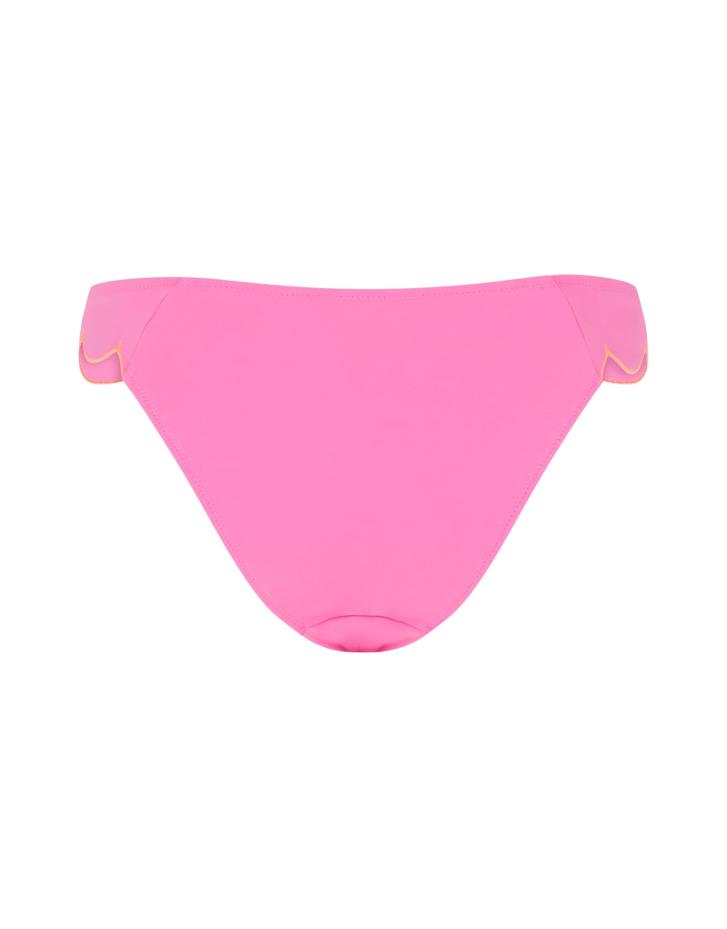 Традиционные плавки выполнены в рамках коллекции-бестселлера Lorna. Для создания этой модели выбран плотный трикотаж для плавания розового цвета. Узнаваемые резные детали, ставшие визитной карточкой игривой коллекции, расположены на боковых панелях. Фирменная окантовка контрастной нитью выполнена в технике австрийской вышивки. Для завершения пляжного образа осталось подобрать удобный лиф из вневременной линии Lorna.