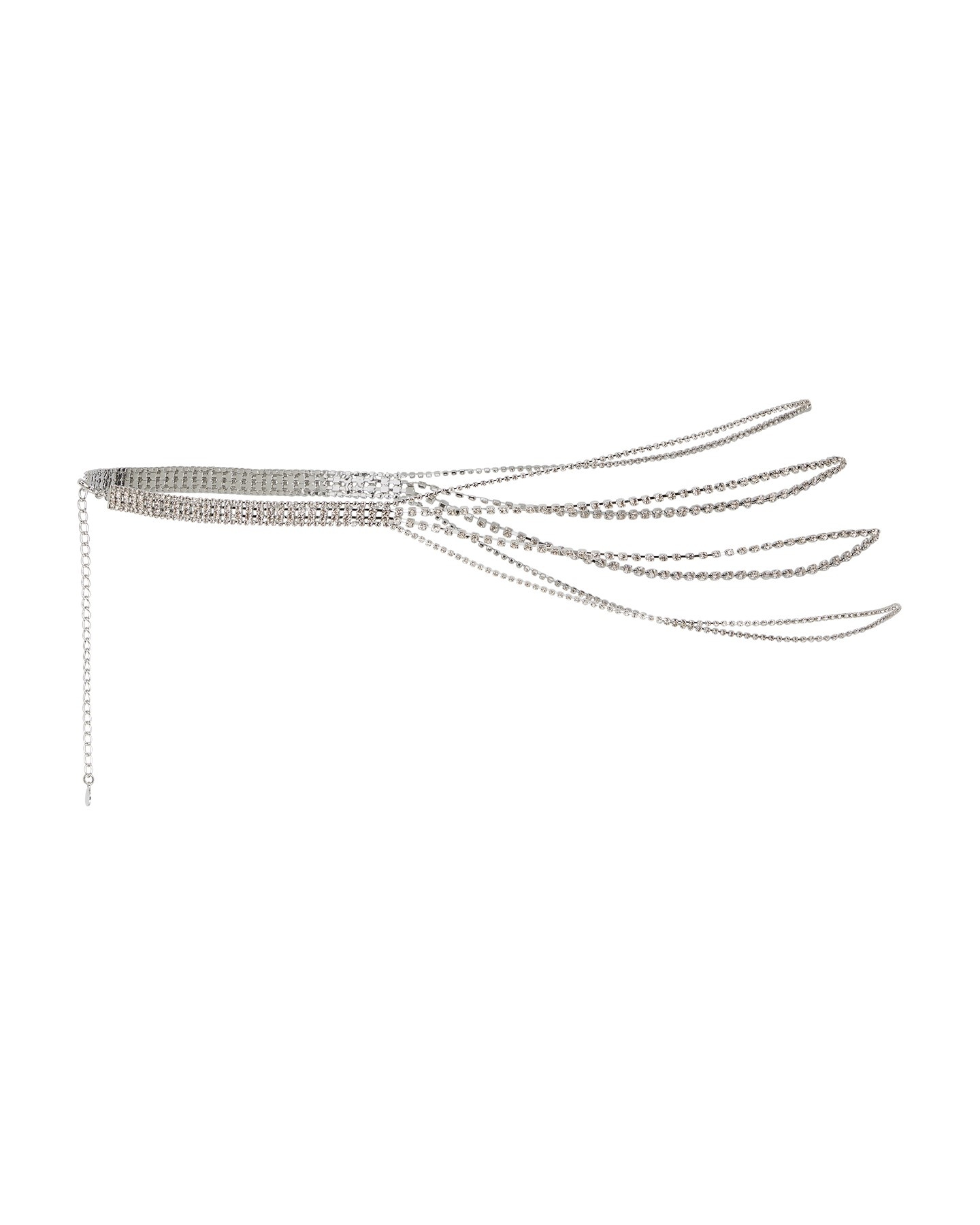 Цепочка на пояс Laynie в серебристом цвете, с переливающимися персиковыми кристаллами, станет ярким акцентом в вашем образе. Покрытие из настоящего серебра. Регулируемые застежки на талии делают ношение комфортным. Идеально сочетается с цепочкой на тело и украшением на голову Laynie для создания неземного образа.