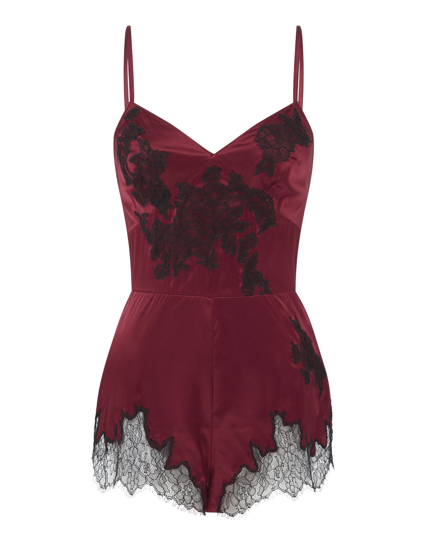 Чувственный и вместе с тем классический дизайн коллекции Christi воплощен в этом боди. Модель выполнена из шелкового стрейч-сатина глубокого бордового цвета, а в качестве декора использовано тончайшее французское кружево. Боди на тонких регулируемых бретелях, низ решен в виде коротких шортиков.