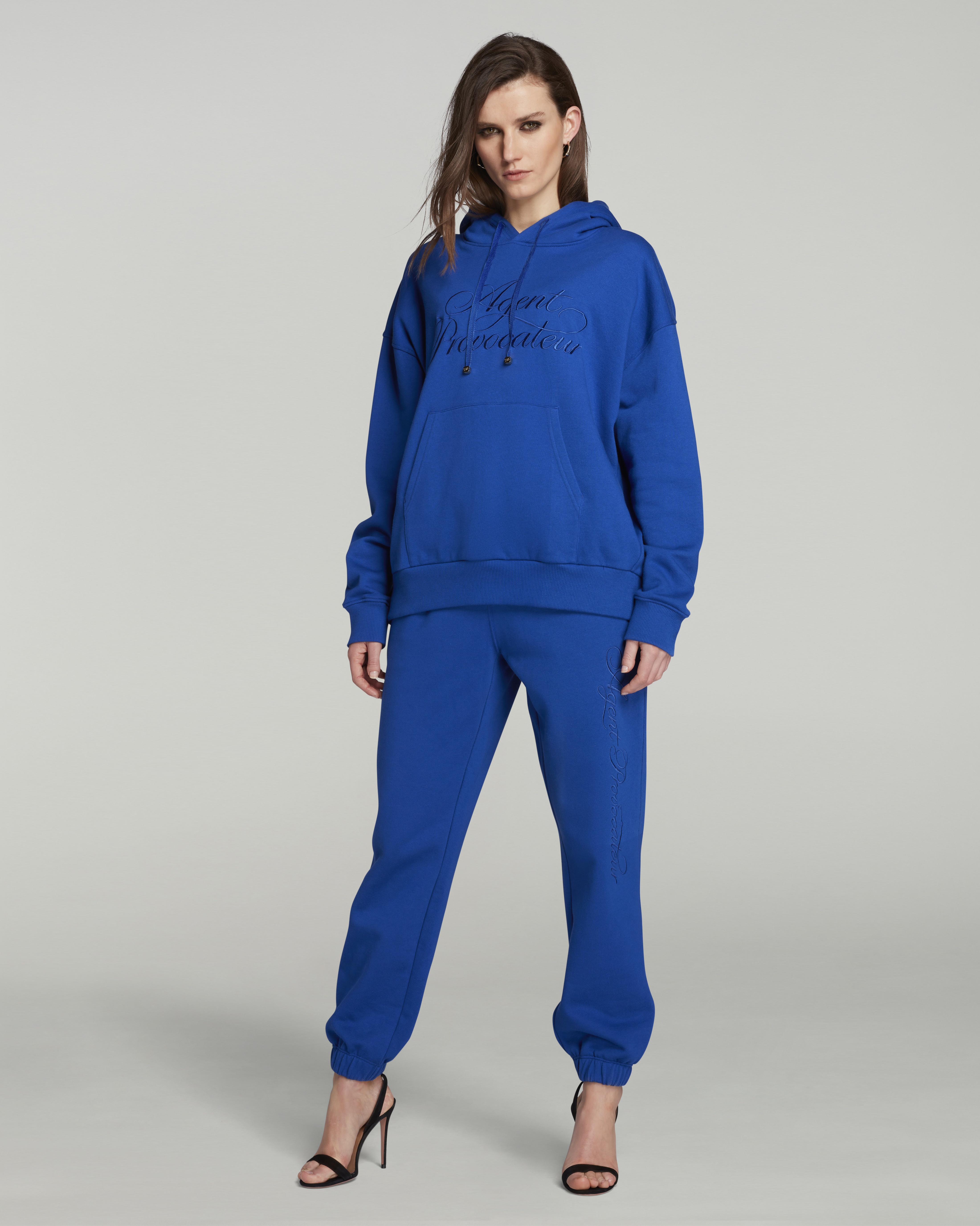 Свободное худи Rayley насыщенного синего цвета электрик сшито из органического хлопка, который отличается мягкостью и обеспечивает оптимальный комфорт. Модель украшена фирменной вышивкой в виде логотипа Agent Provocateur. Дополните сет уютными брюками Rayley.
