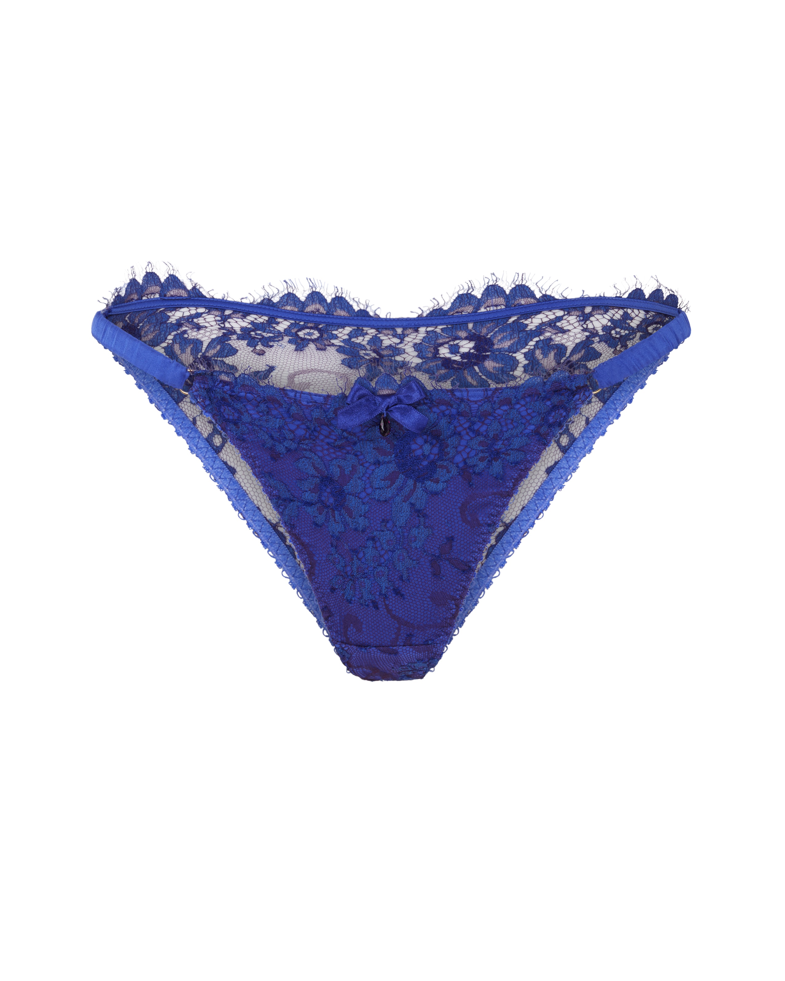 Классические трусы Carline кобальтового цвета сшиты из шелкового атласа, украшенного цветочным французским кружевом Leavers. Атласный бант со стразом Swarovski®, позолоченная фурнитура, атласные лямки танга и ажурный рубчик по краю завершают роскошный дизайн. Сочетайте с комплектом Carline для максимальной гламурности.