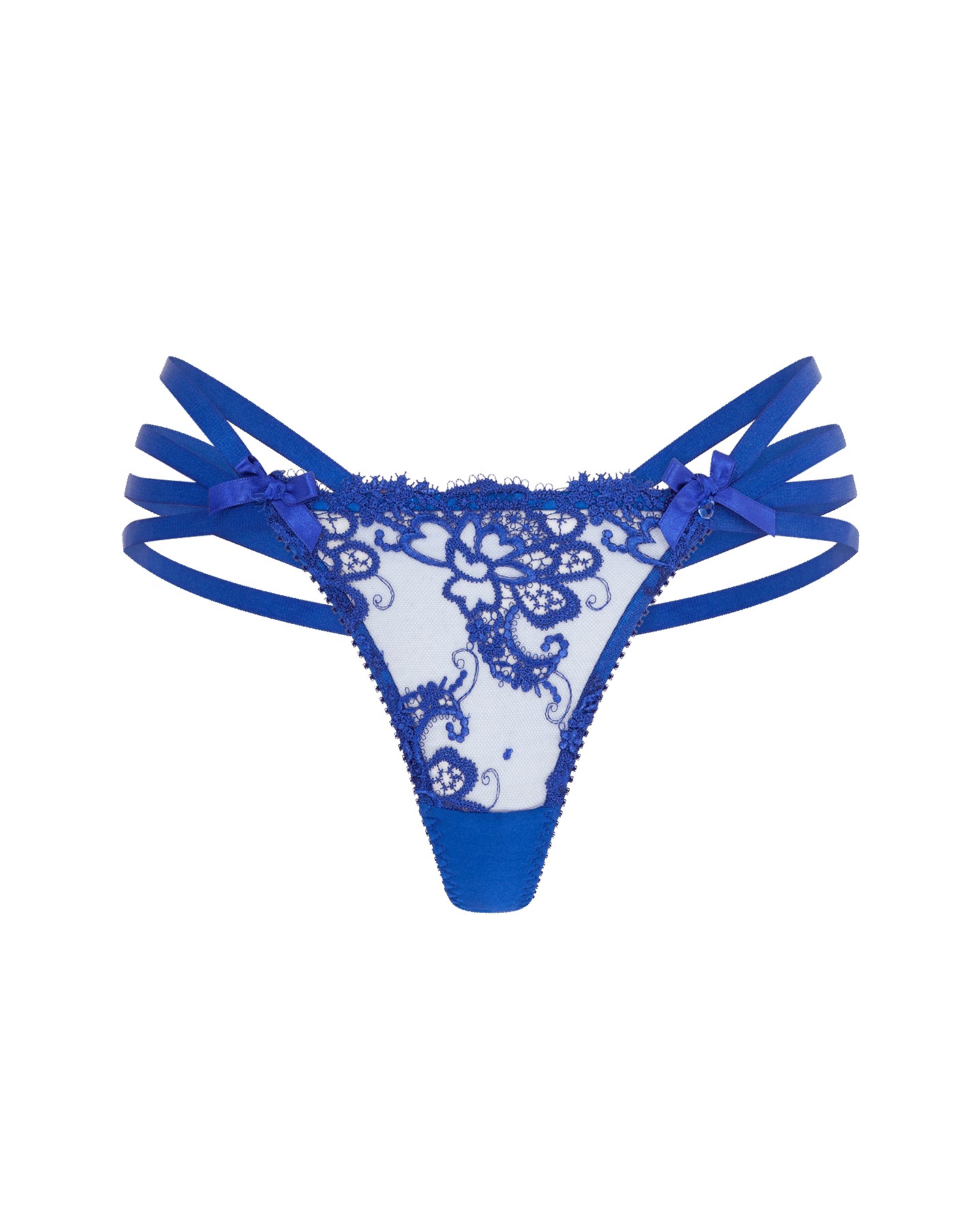Трусы стринги Dioni выполнены с использованием швейцарской гипюровой вышивки и переплетающихся бретелей, которые собираются в изящный узор в центре. Атласные банты и кристаллы Swarovski завершают образ. Сочетайте с другими изделиями из коллекции Dioni для эффектного лука.