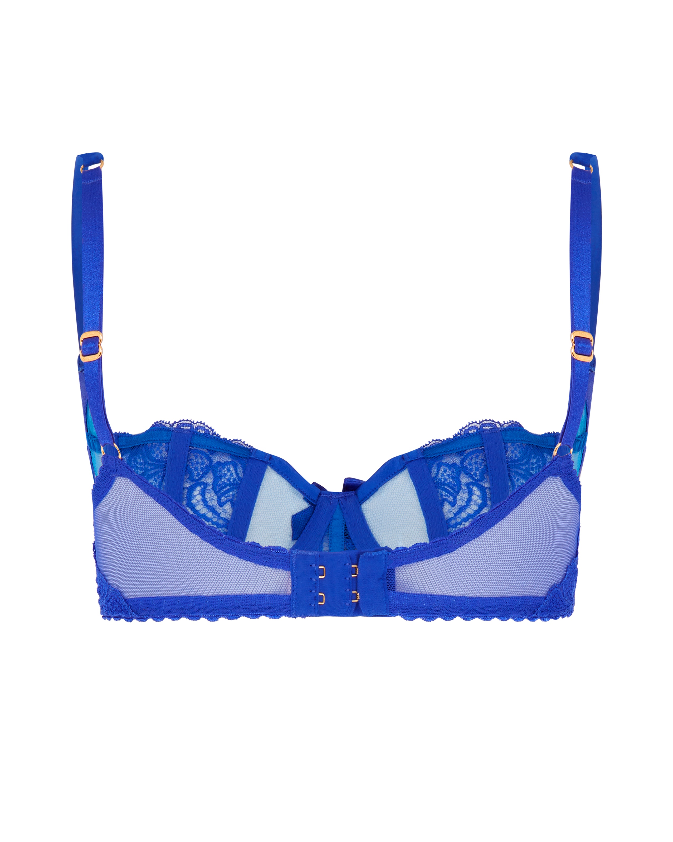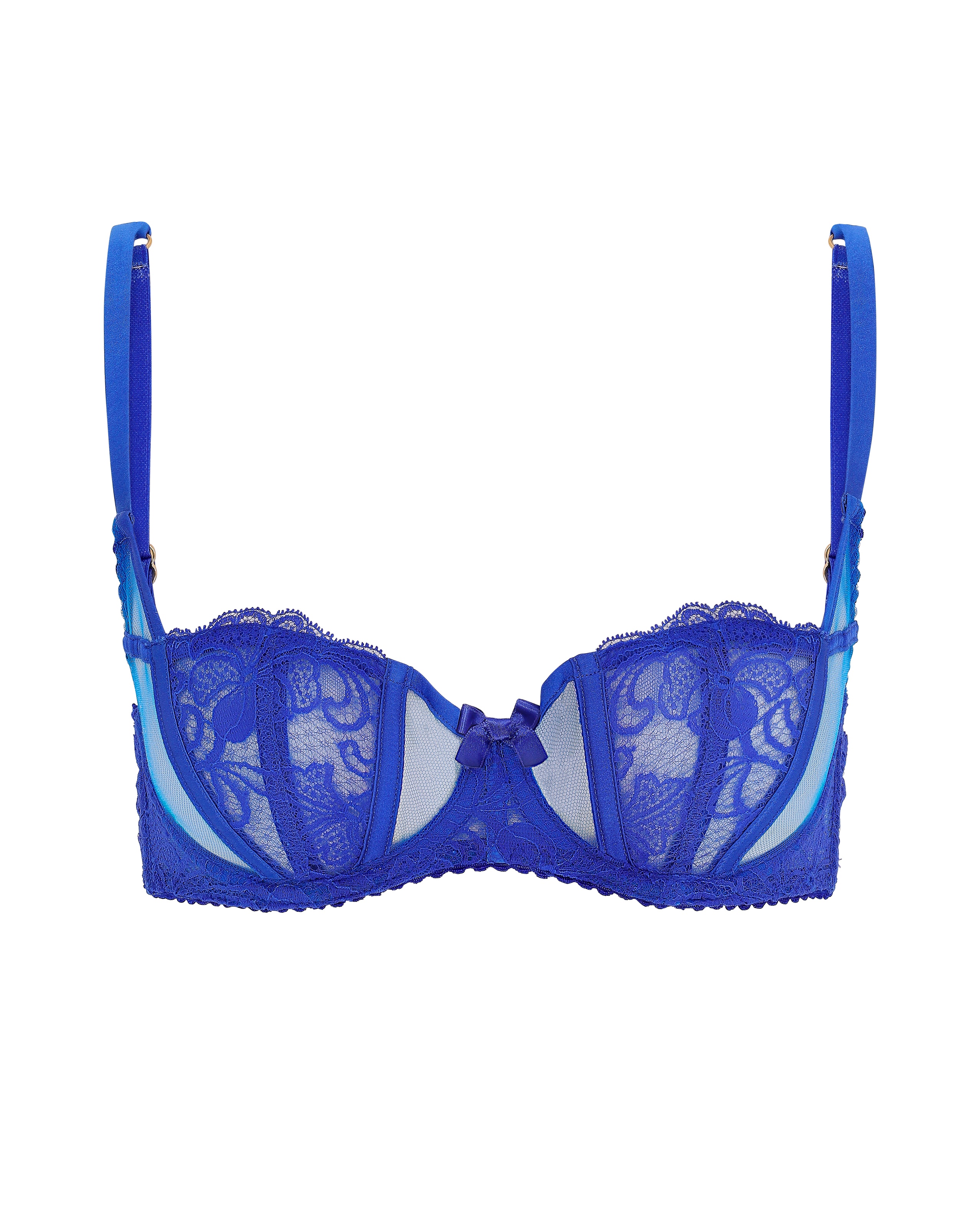 Бюстгальтер балконет Rozlyn с кружевными и тюлевыми панелями обеспечивает поддержку благодаря каркасной конструкции. Шелковые швы и атласный бантик завершают изделие.