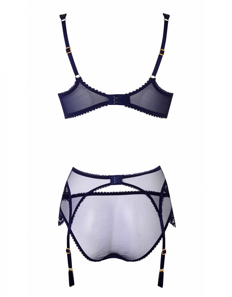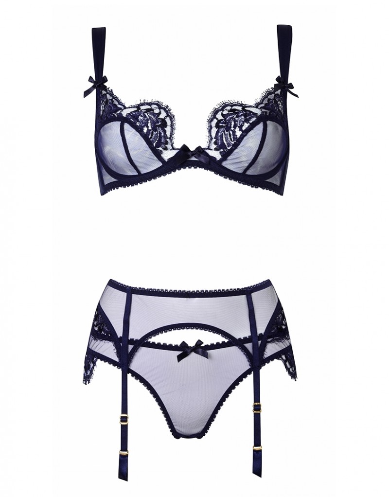 Встречайте новый игривый бестселлер. Бюстгальтер черничного с глубокими чашками создан из легчайшего полупрозрачного тюля. Чашки бюстгальтера разделены швами на три части, нижняя из которых дополнена двойным слоем материи для дополнительной поддержки. Спинка из крупной сетки, нежная кружевная отделка вдоль декольте и сатиновые бантики завершают женственный образ.