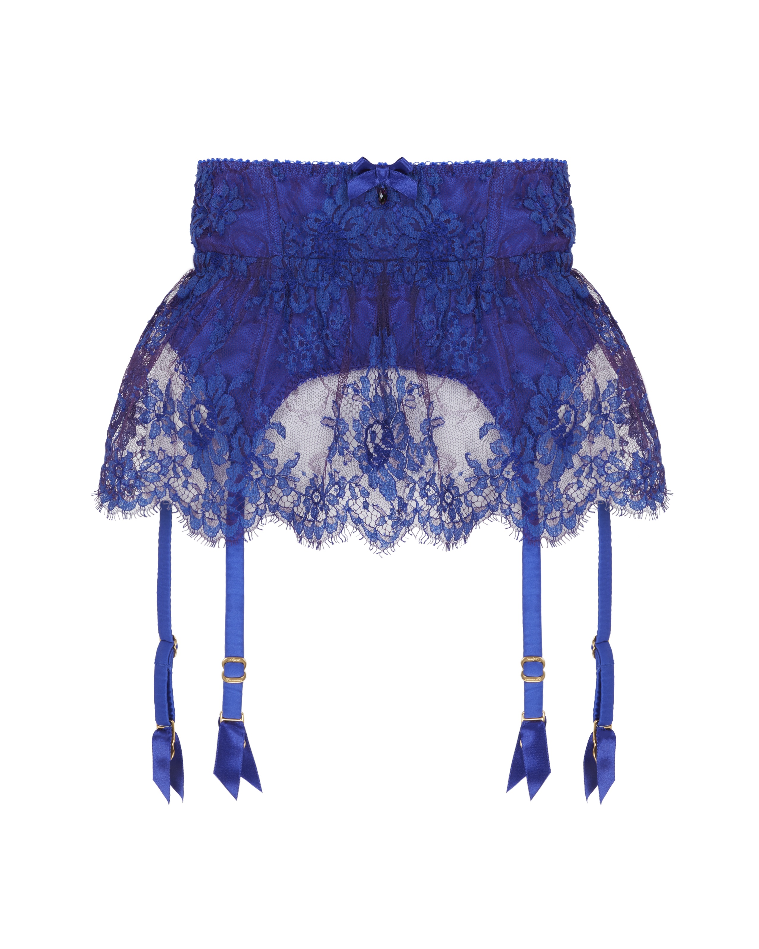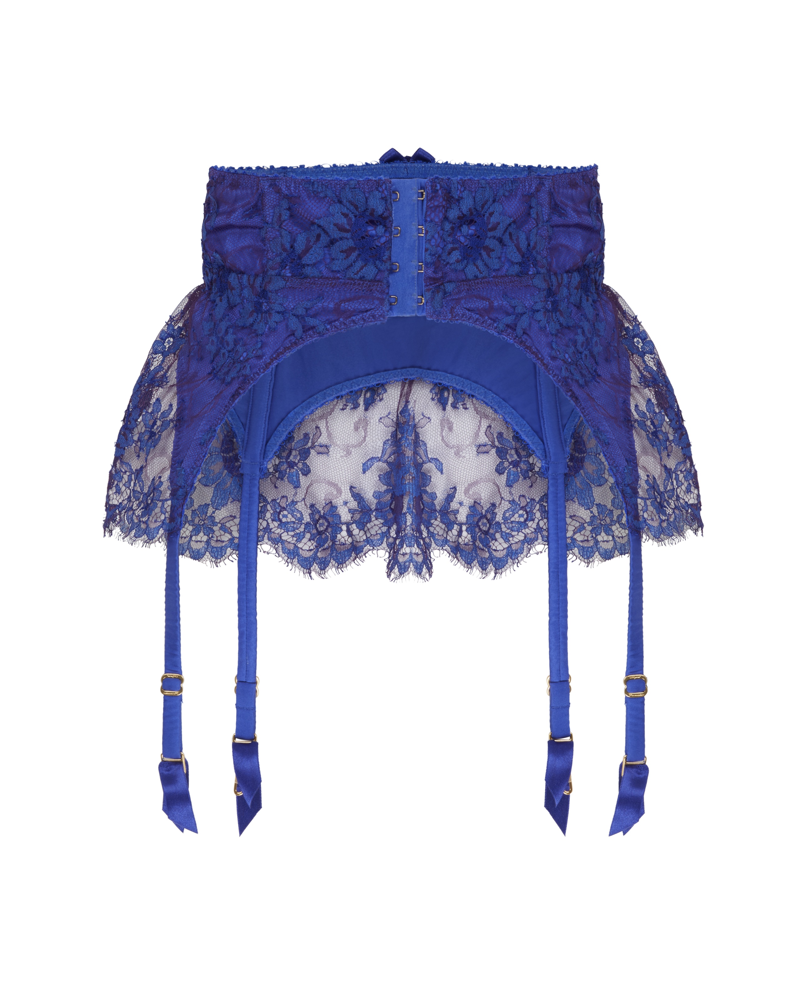 Элегантный пояс для чулок Carline синего оттенка с высокой посадкой: шелковый атлас служит основой для изысканного кружева Leavers. Банты со стразами Swarovski®, позолоченная фурнитура, рубчик в виде ресничек по краю и застежка-крючок сзади гарантируют роскошный вид и комфорт. Сочетайте с комплектом Carline для максимальной гламурности.