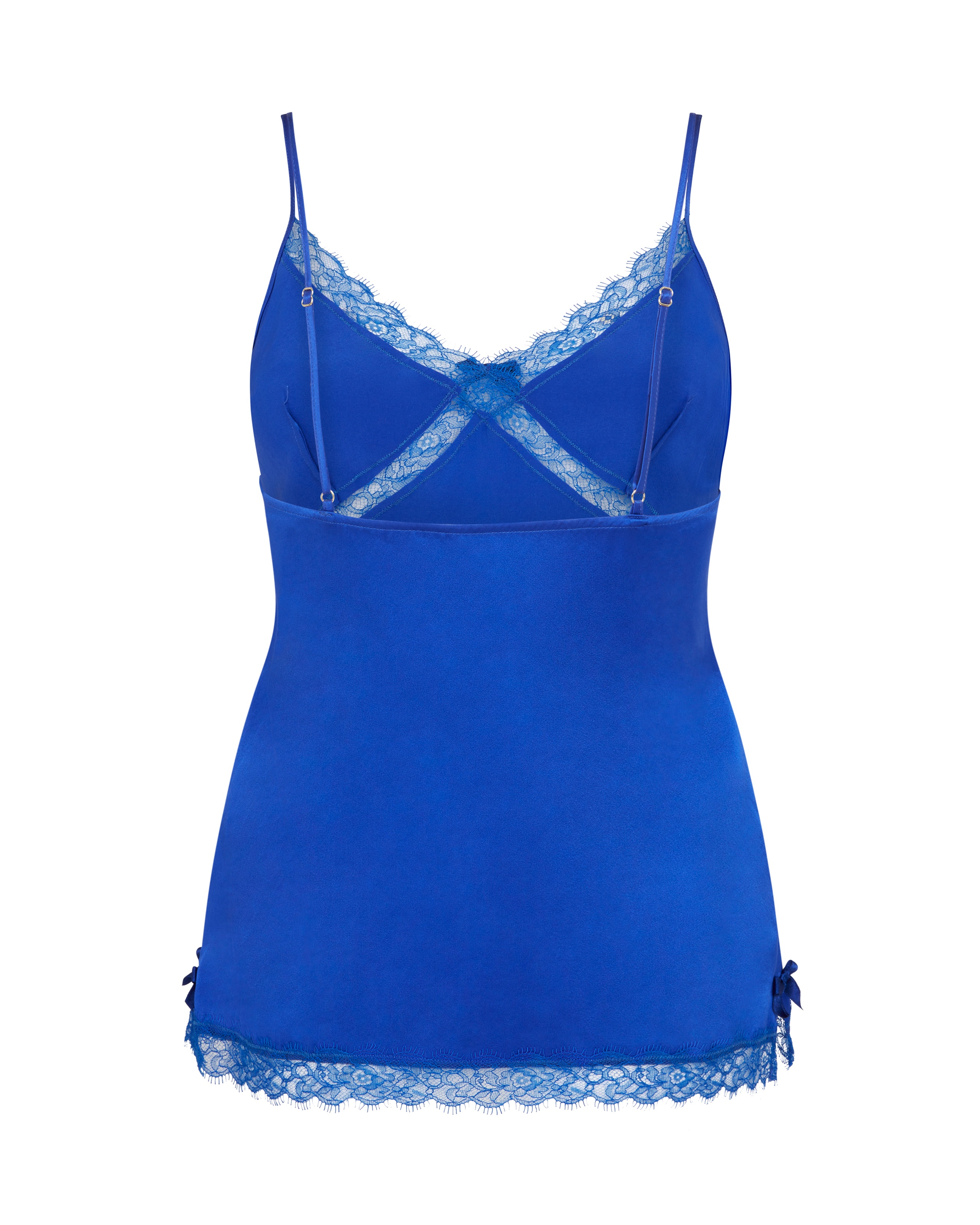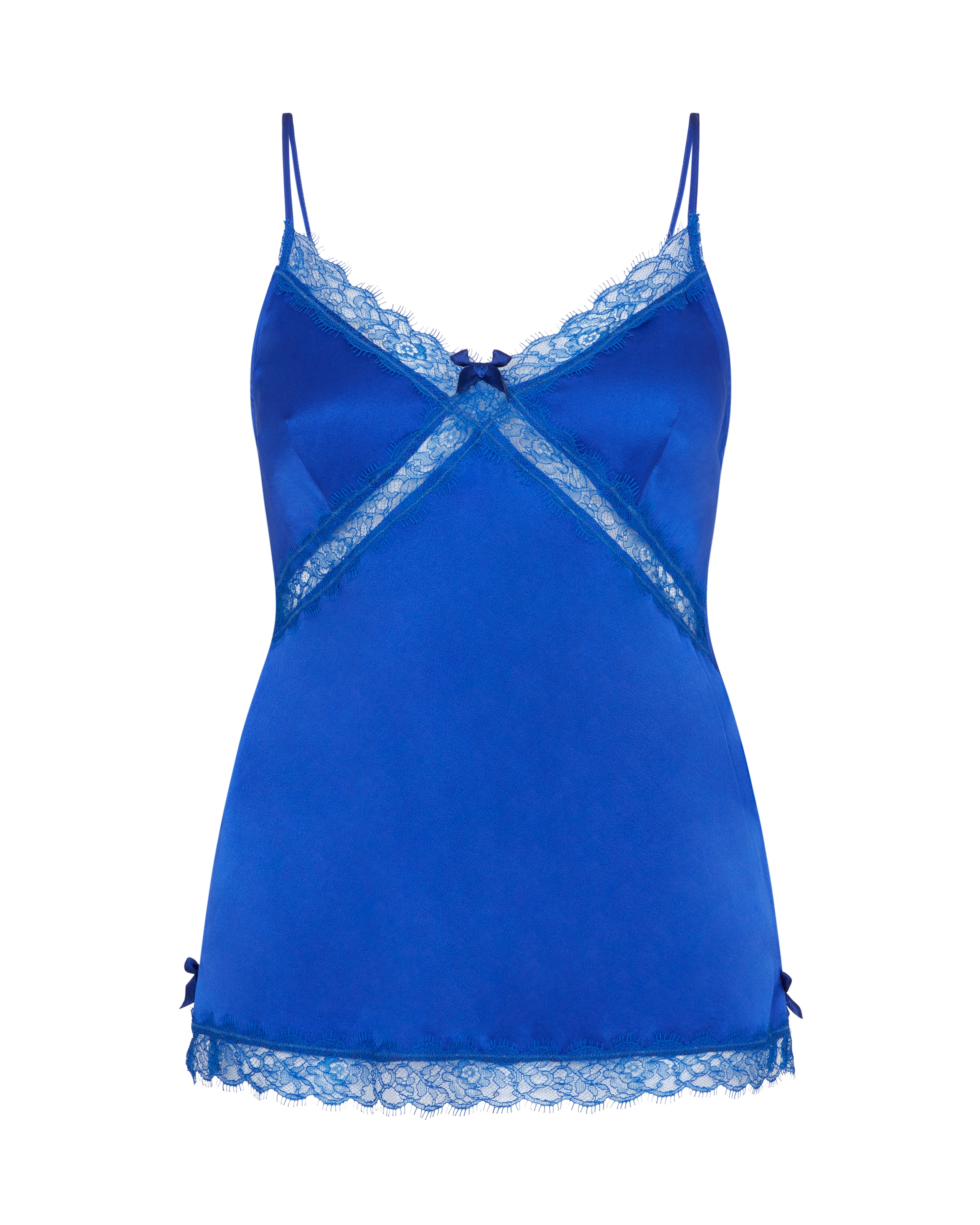 Топ Gisele в насыщенном синем цвете выполнен из эластичного шелка с отделкой кружевом Leavers. Регулируемые бретели обеспечивают комфортную посадку, а в комплекте с шортами или трусами создается гармоничный образ.