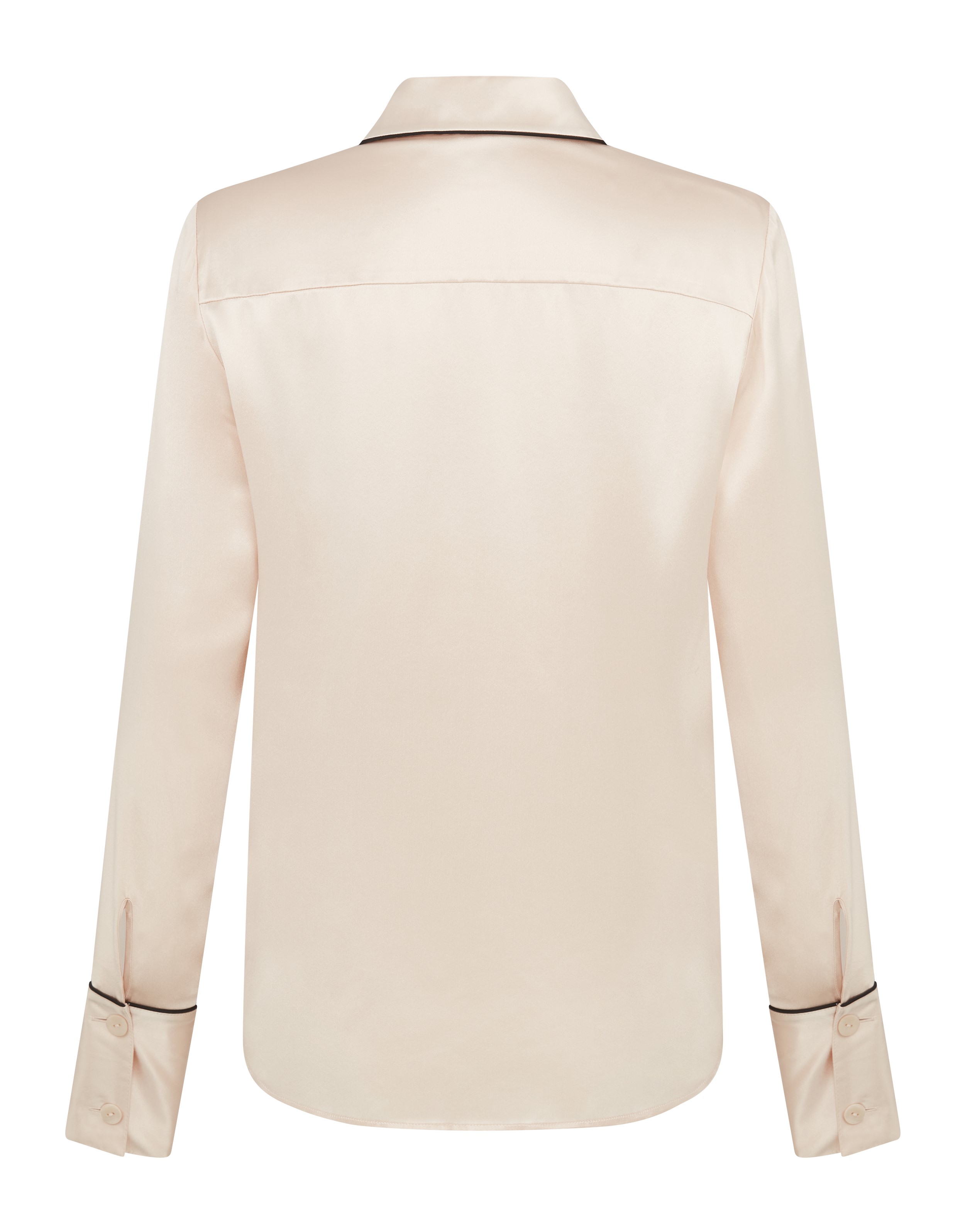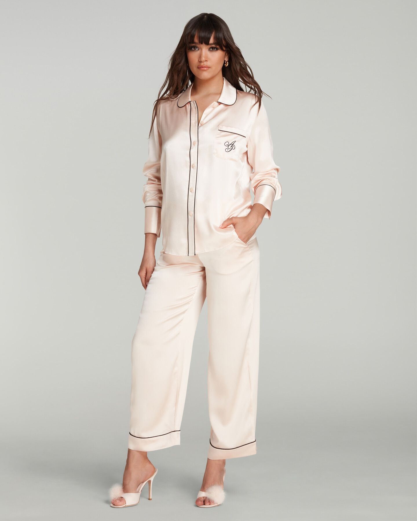 Пижамная рубашка из классической коллекции Agent Provocateur сшита из атласа нежно-розового цвета. Крой, вдохновленный изделием с мужского плеча, дополнен контрастной окантовкой и фирменной вышивкой на нагрудном кармане. Длинные рукава завершены широкими манжетами на пуговицах. Для завершения изысканного комплекта, подберите шорты или брюки из легендарной коллекции британского бренда.