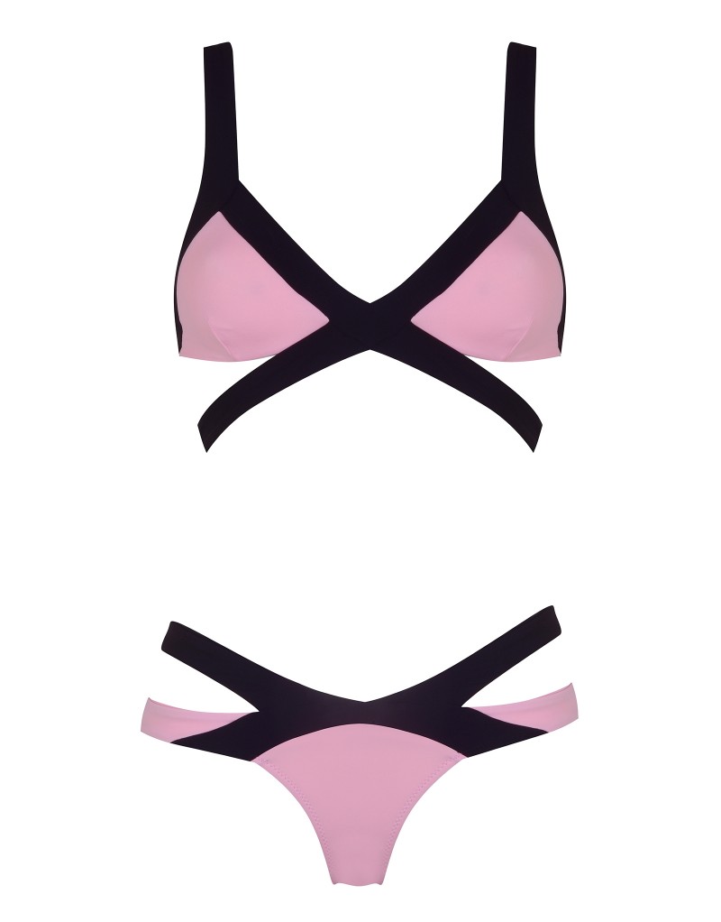 Mazzy возвращается в культовом сочетании черного и розового от Agent Provocateur. Открытые классические плавки Mazzy в нежно-розовом цвете обернуты черными бандажными лентами, которые образуют игривые вырезы на бедрах. Это спортивные и сексуальные плавки с низкой линией талии и глубокими вырезами.