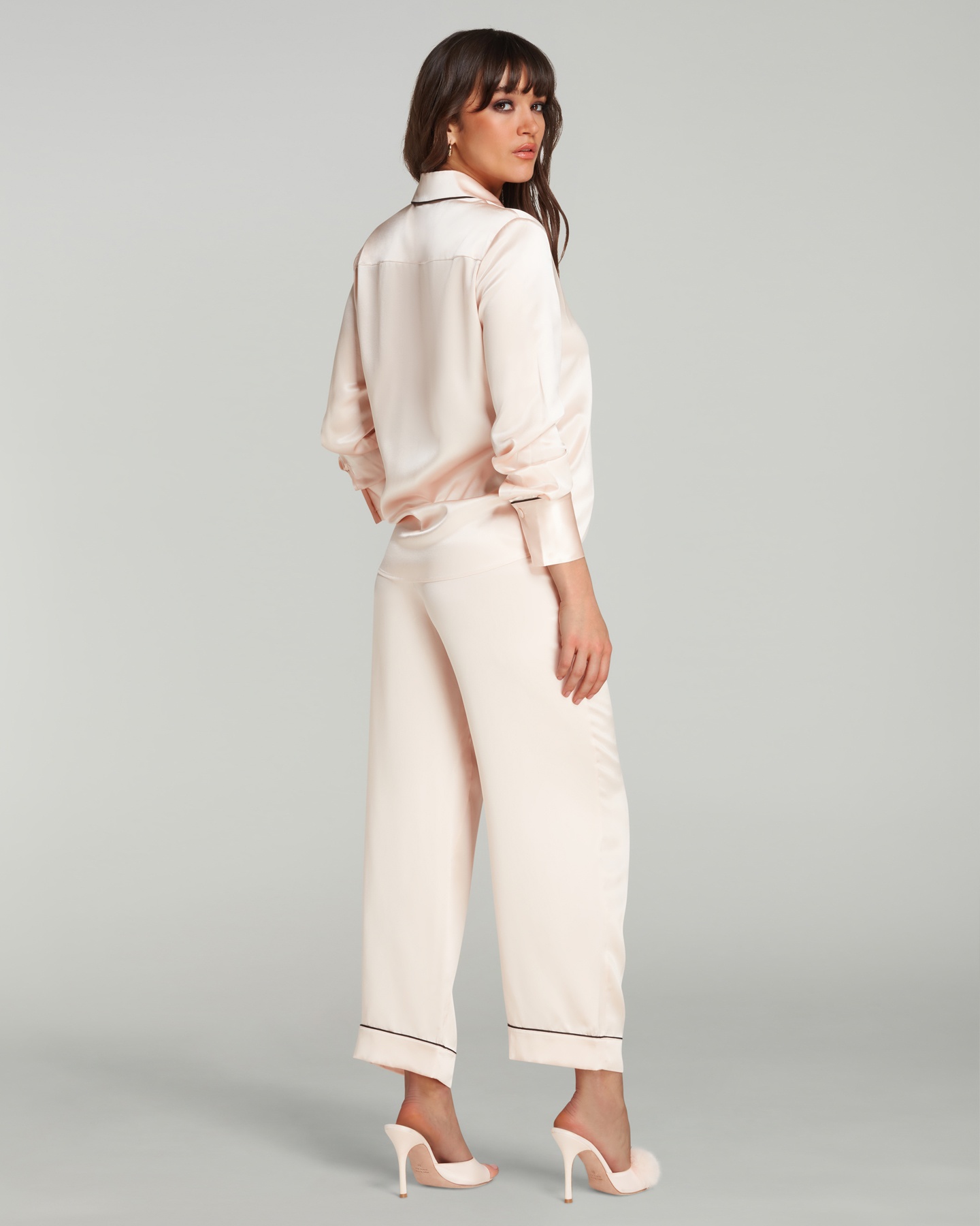 Классические пижамные брюки нежно-розового оттенка изготовлены из тончайшего шелка. Модель имеет удобную завязку на талии, подчеркнутую контрастным кантом для придания элегантности. Практичные брюки с двумя боковыми карманами обеспечивают удобную посадку, вдохновленную традиционной мужской пижамой. Дополните элегантный образ для дома соответствующей рубашкой.