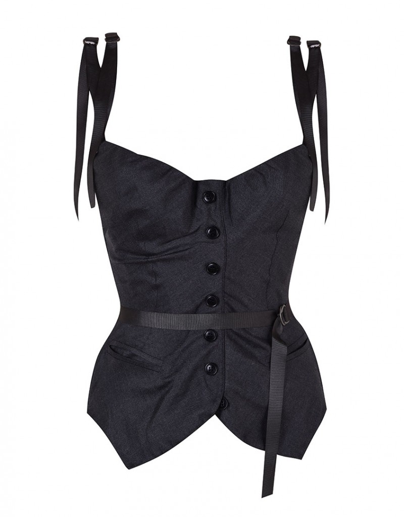 Deb станет соблазнительной изюминкой вашего делового гардероба. Этот корсет – современная интерпретация традиционного нижнего белья. Модель угольно-серого цвета украшена пуговицам и фальш-карманами в деловом стиле. Корсет выполнен из тонкой костюмной ткани и дополнен поясом и бретелями из шелковистой рифленой ленты. Косточки и подкладка из плотной сетки подчеркивают силуэт. Детали: сочетайте с шортами Deb. Золотистая фурнитура. Материалы и уход: 100% шелк. Подкладка: 72% полиамид, 28% эластан. Подкладка чашек: 100% полиэстер. Подкладка боковой панели: 100% полиэстер. Только профессиональная сухая химчистка.
