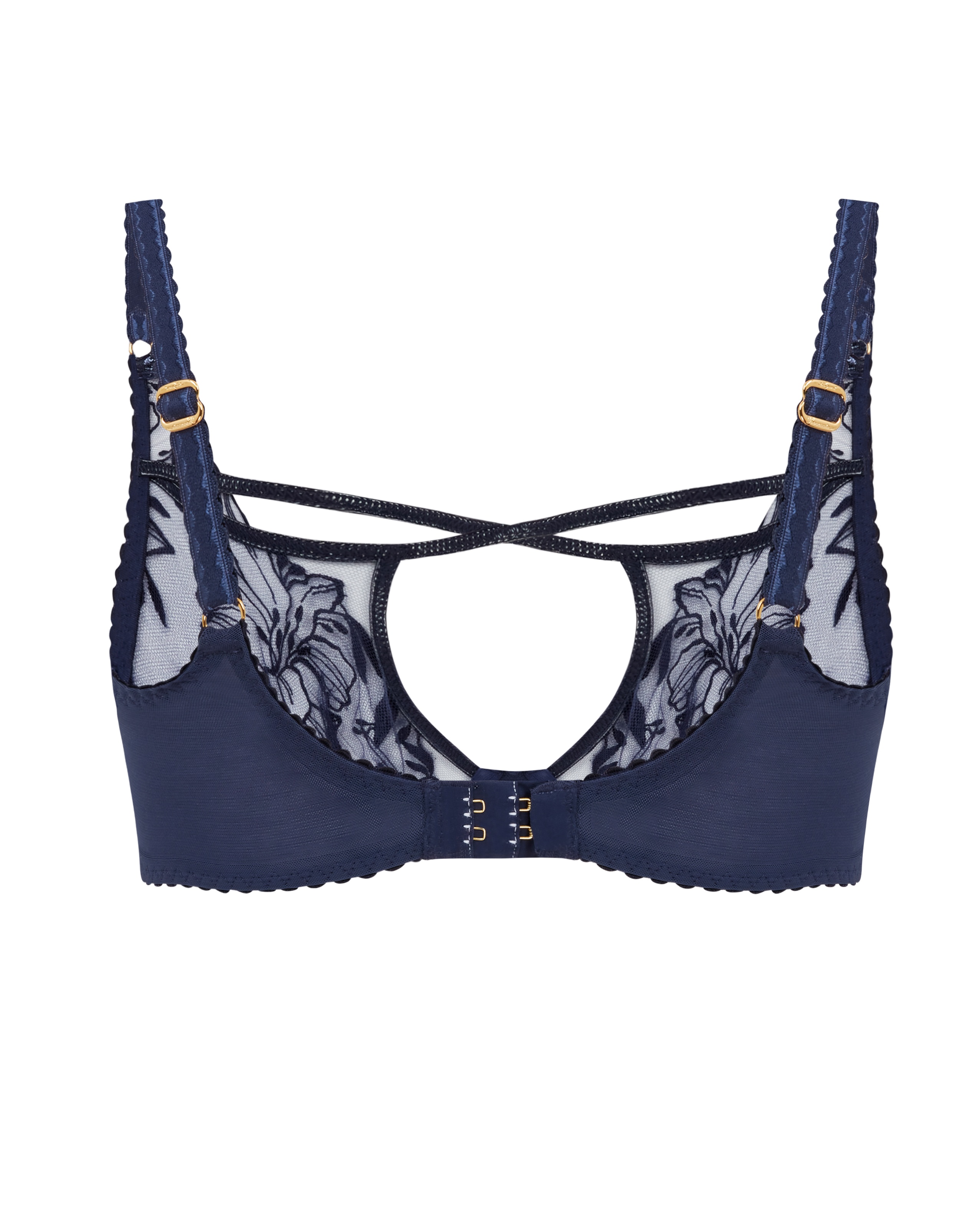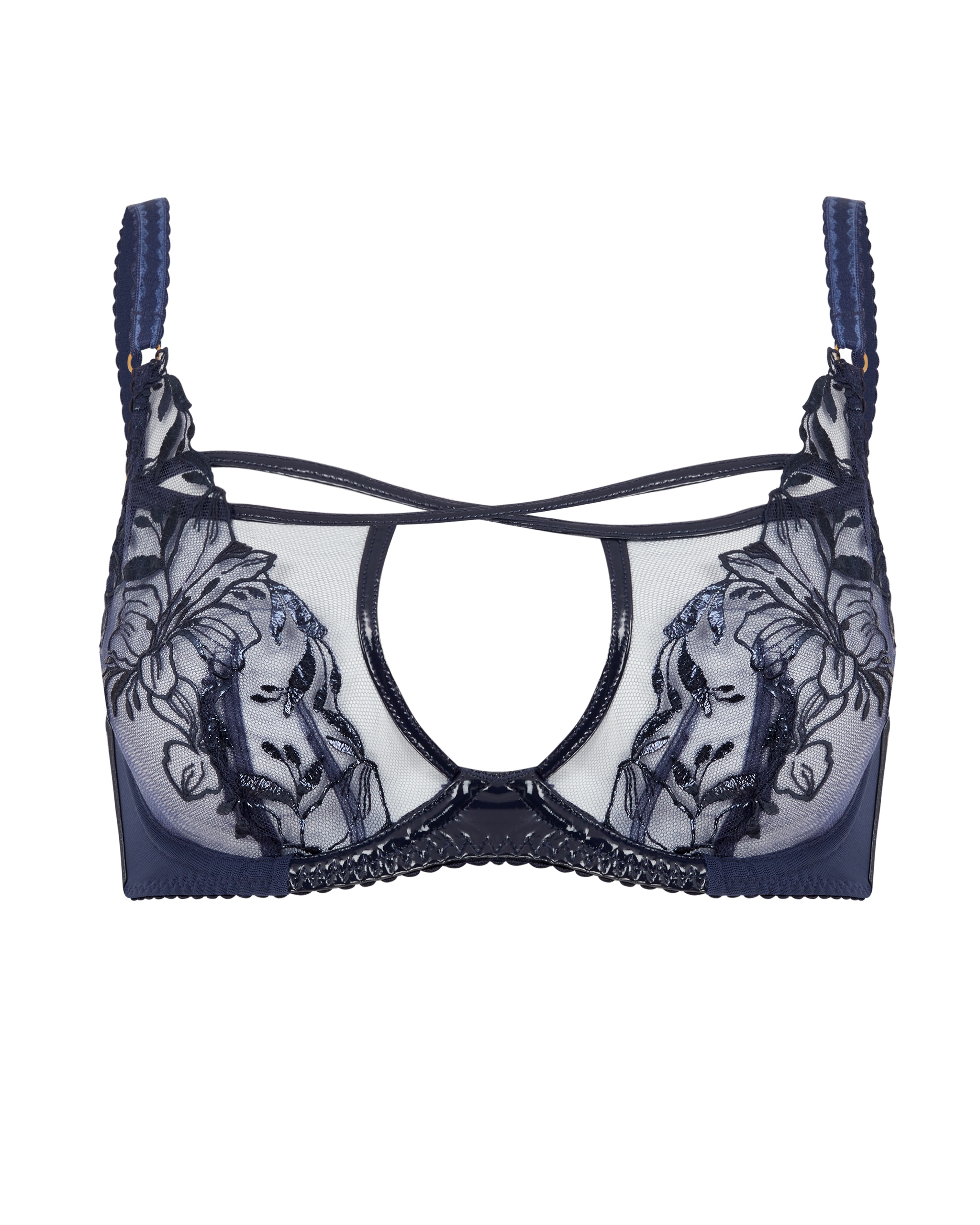Бюстгальтер с мягкими чашками Ozella темно-синего цвета сочетает дерзость и элегантность. Модель с глубоким вырезом выполнена из прозрачного тюля с нежной цветочной вышивкой. Глянцевая окантовка и пикантные вырезы дополняют смелый образ. Полный комплект Ozella — это изысканность с секретом, которым вы захотите поделиться.
