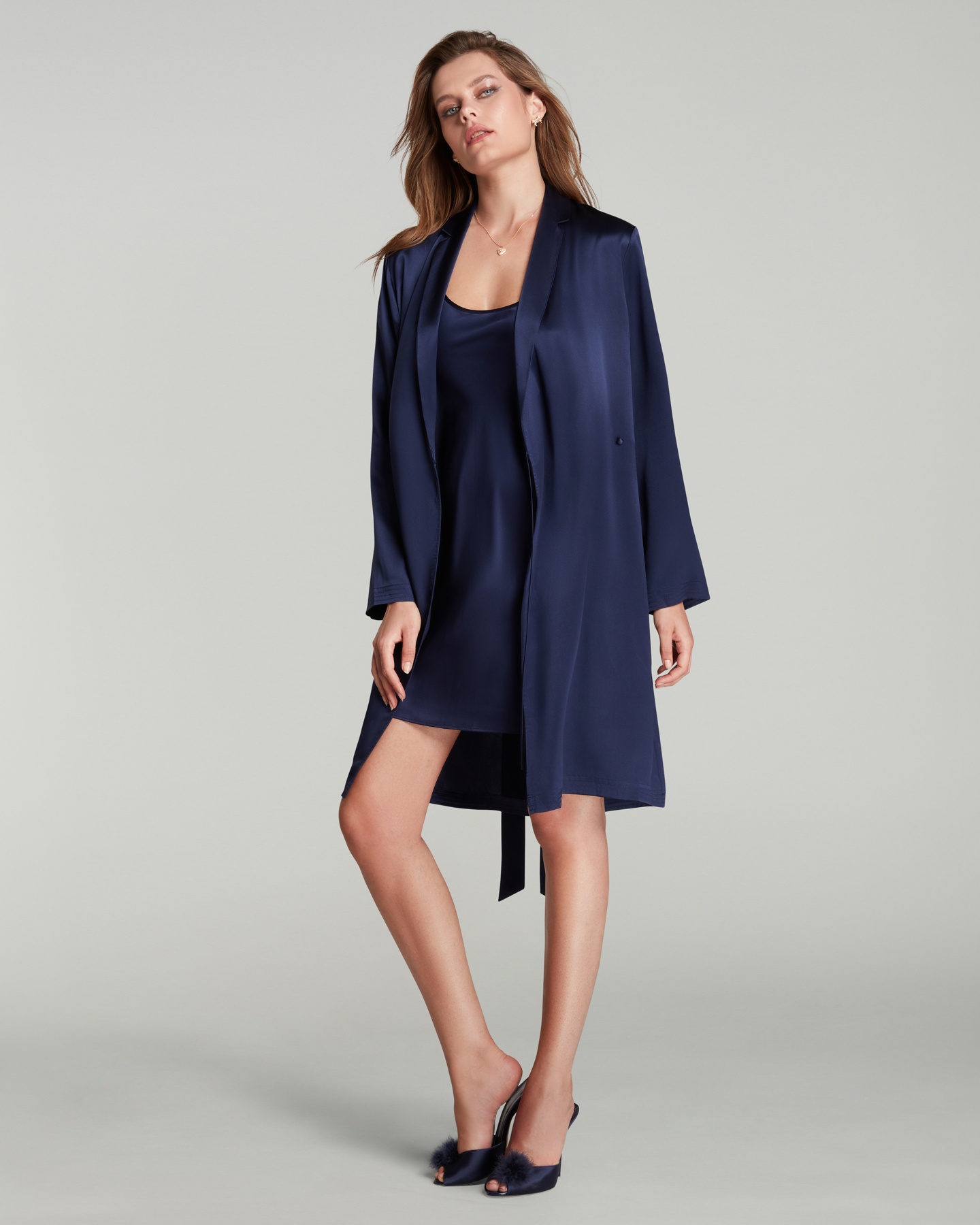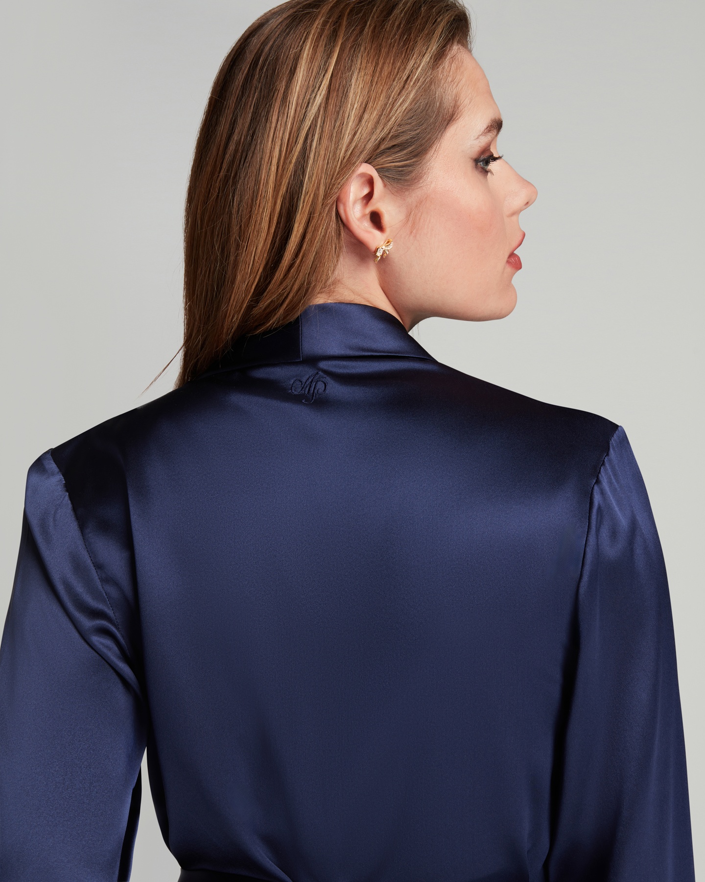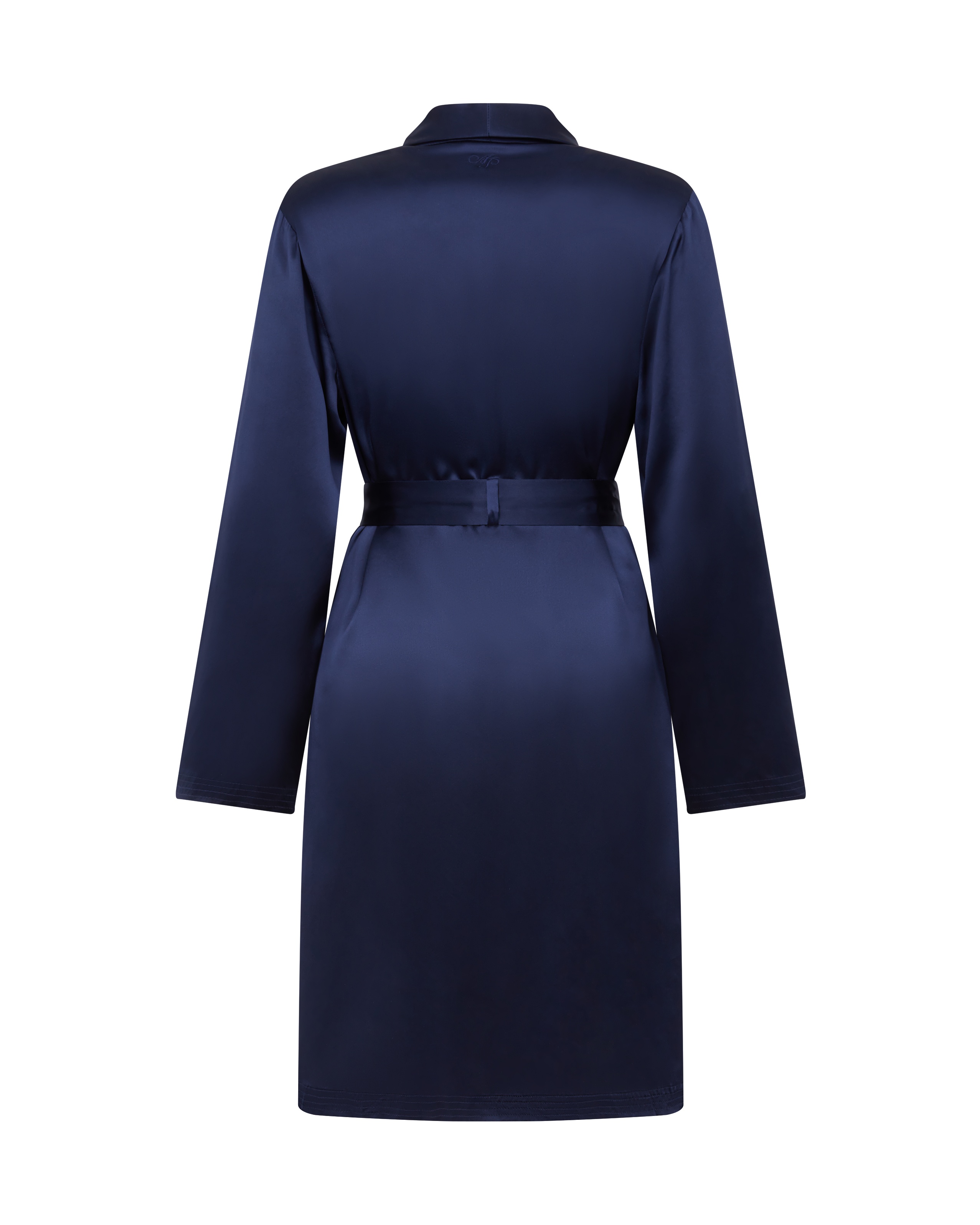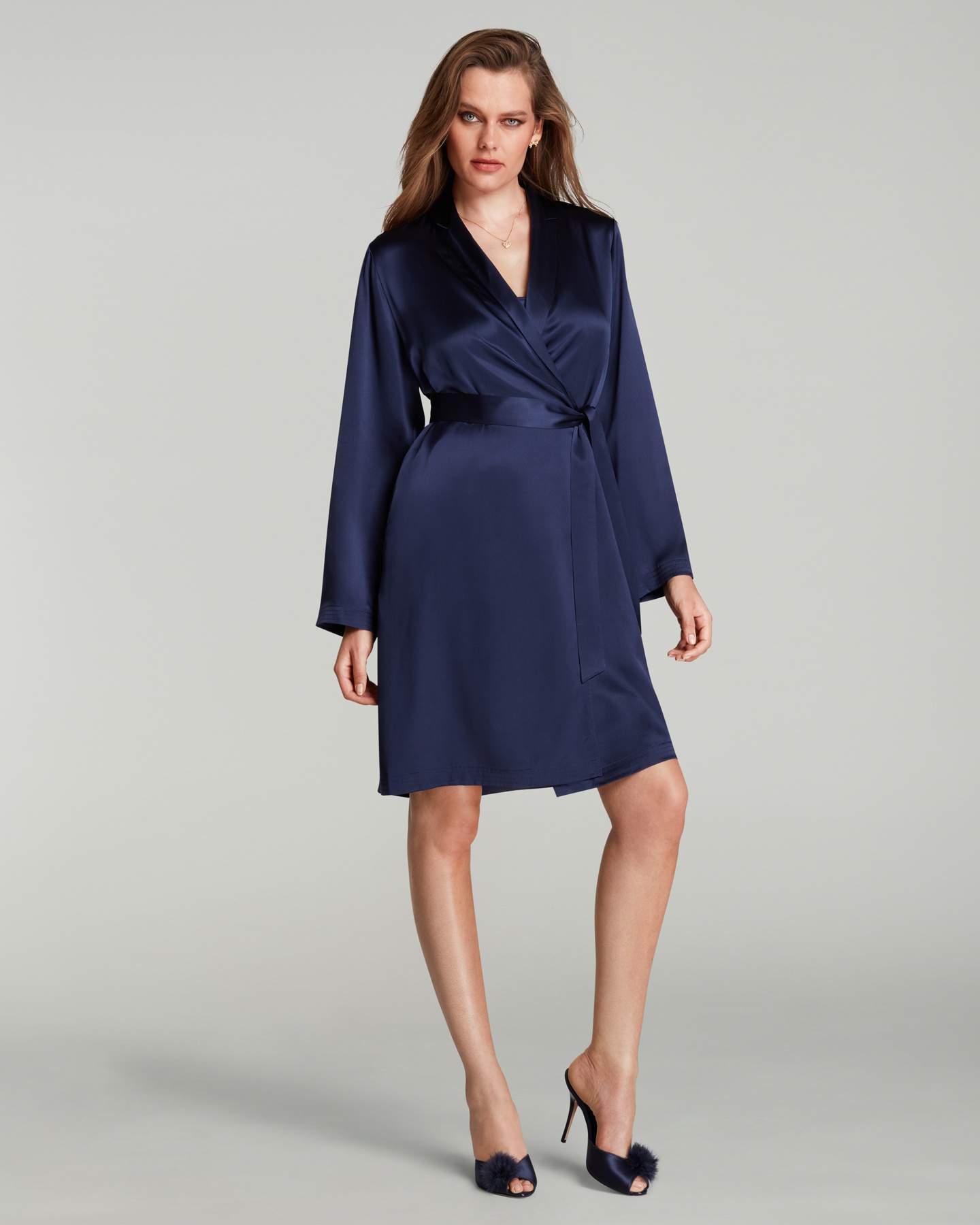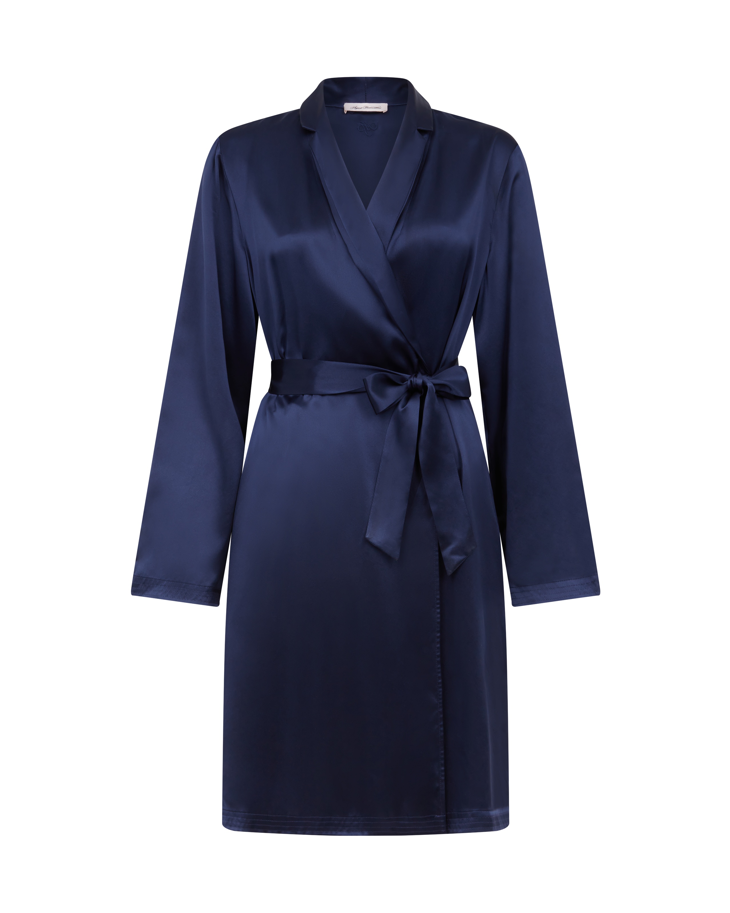 Короткий халат Cecily: роскошный шелк, игривая длина и соблазнительная драпировка. Идеальный партнер для нижнего белья AP, создающий гармоничный образ для отдыха.