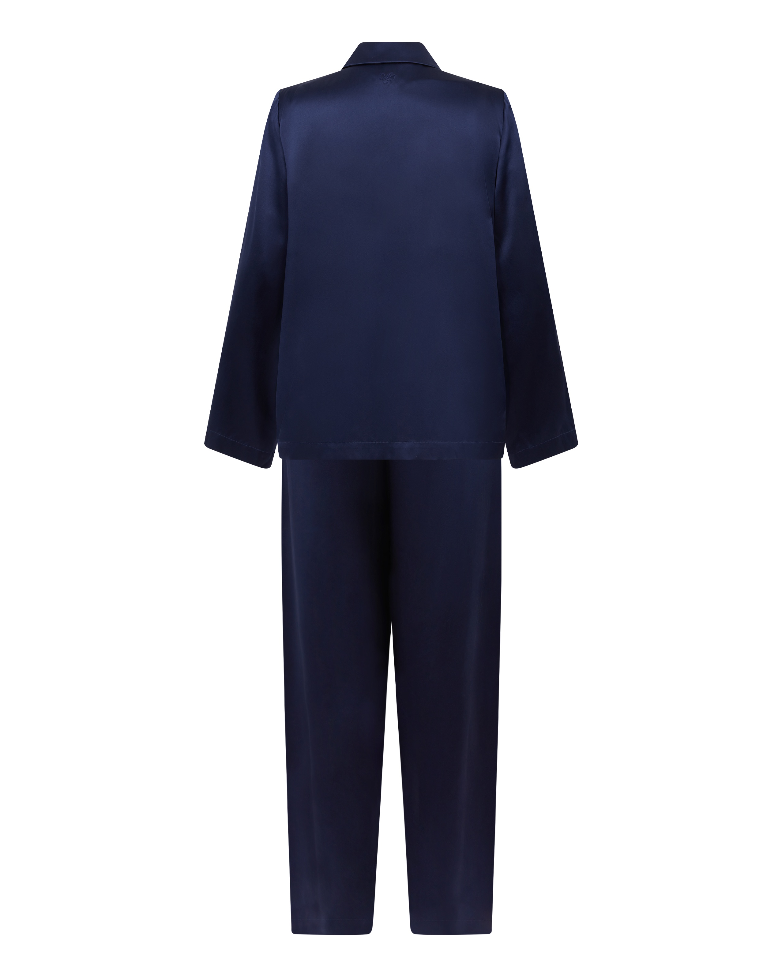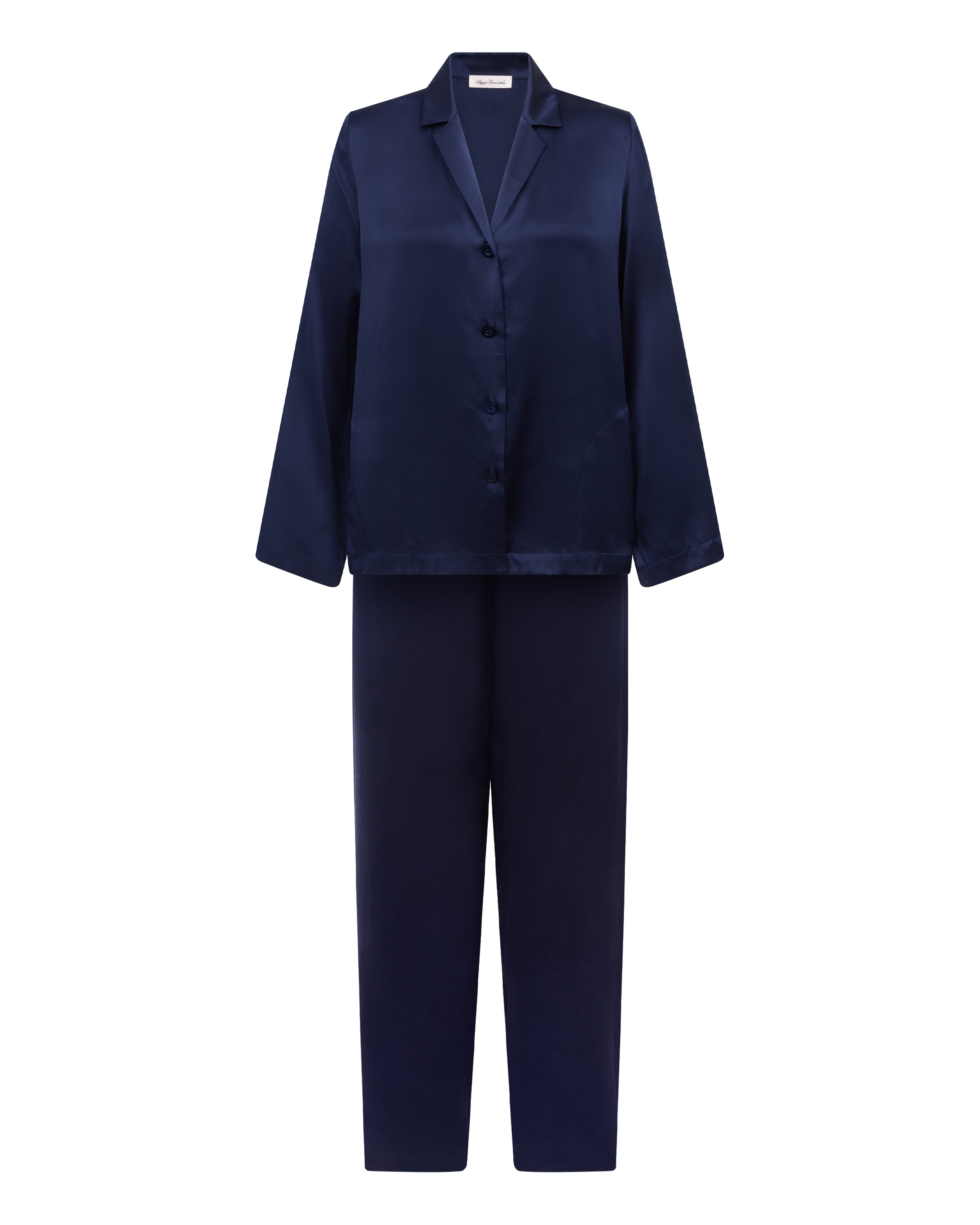Темно-синяя пижама Cecily: глубокий оттенок и изысканный шелк. Эта обновленная классика доказывает, что AP задают высочайшие стандарты для спальни.
