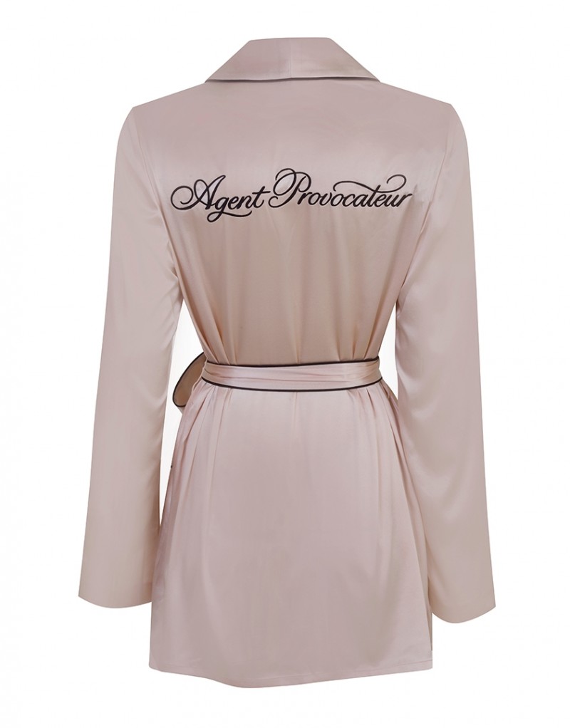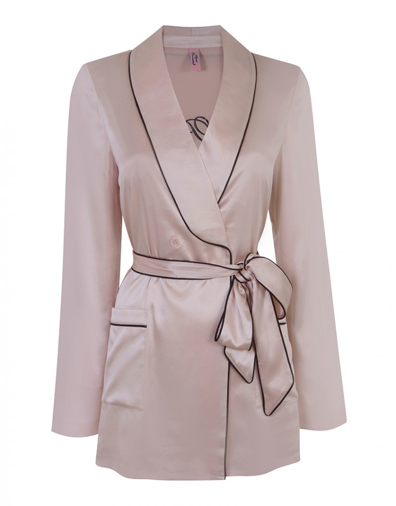 Классический пижамный жакет с запахом из розового шелка дополнен съемным поясом-кушаком на талии. Контрастная черная оторочка и вышивка с монограммой AP завершают образ. - Сочетайте с пижамными брюками Ezra Материалы и уход: 100% шелк. Рекомендована ручная стирка.