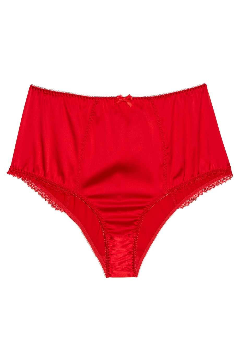 Гладкая, шелковистая Felinda выскальзывает из темноты, околдовывая своими чарами. Высокие игривые трусики в стиле ретро с тонкими швами украшает оторочка красным кружевом по краю и шелковый бантик на талии. Сзади трусики застегиваются на потайную молнию.