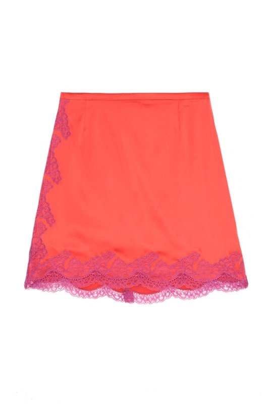 Lucie – потрясающий яркий комплект на основе классической модели Amelea. Эта мини-юбка добавит изюминку вашему гардеробу и станет идеальной парой для будуара вместе с кроп-топом Lucie. Выполненная из кораллового шелка, она оторочена сиреневым кружевом ливерс вдоль бедра и по подолу. Высокая талия на мягкой резинке выгодно подчеркивает фигуру и обеспечивает особый комфорт.