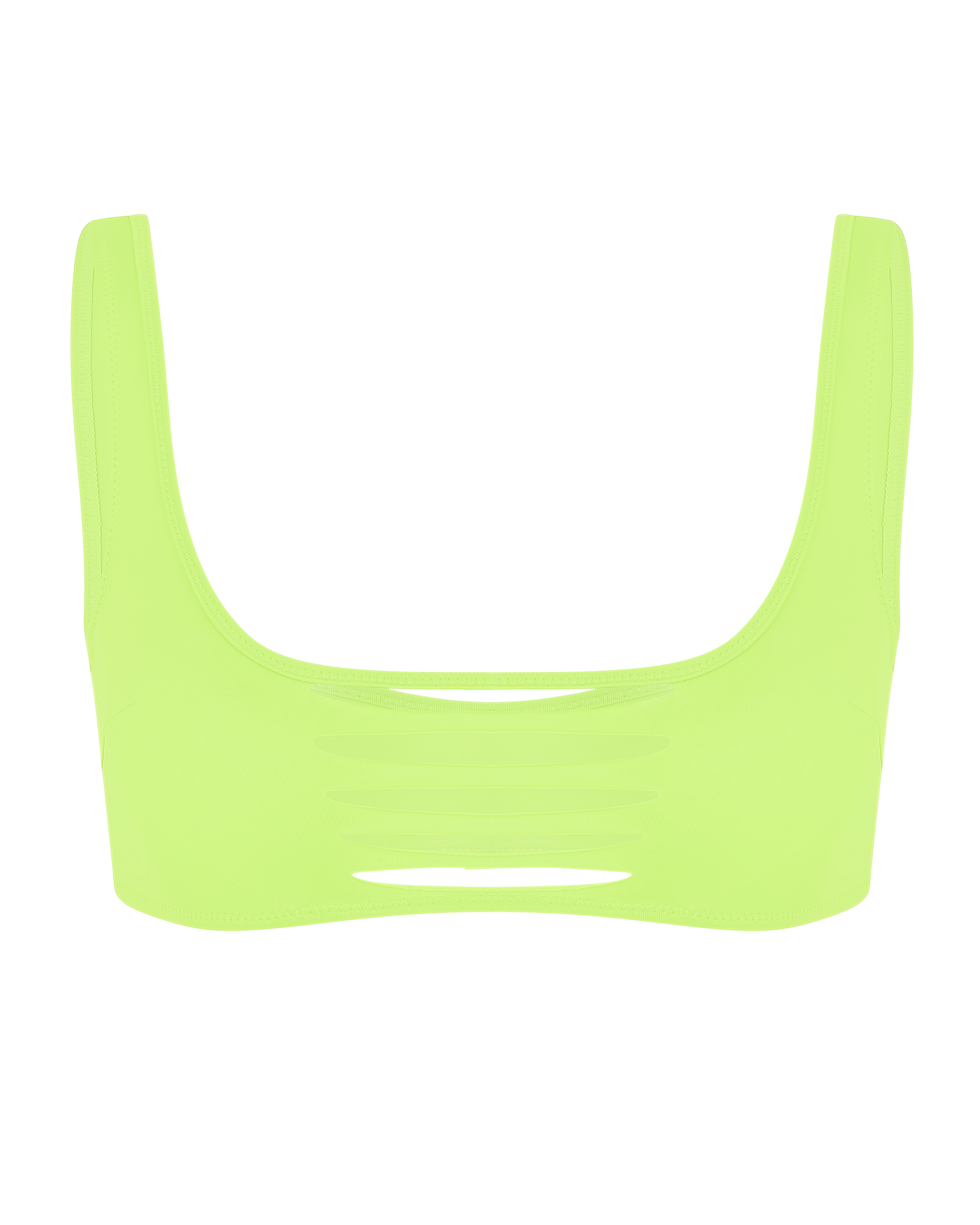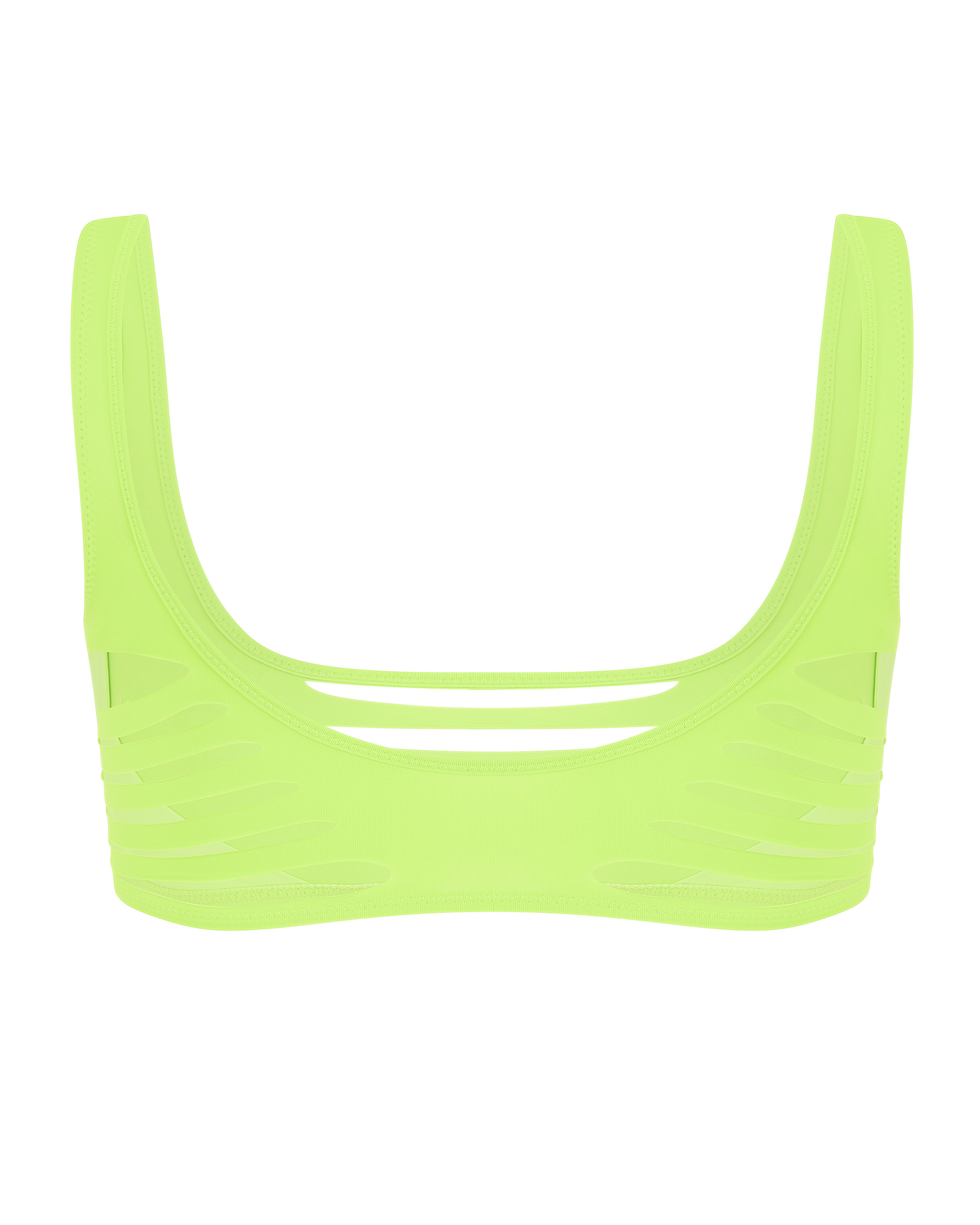 Ощутите соблазнительное очарование коллекции Dakotta, представленной в цвете "зеленое яблоко". Топ купальника выполнен из качественного бифлекса и дополнен дерзкими горизонтальными прорезями. Цельнокроеные бретели, создающие глубокий вырез, и отсутствие застежек делают его идеальным для комфортного ношения.