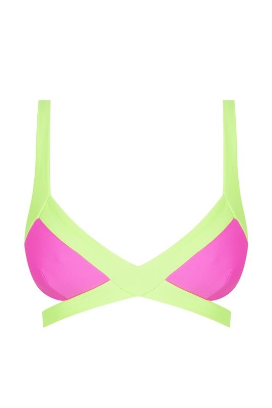Культовая модель купальника Mazzy в новом сочетании сочных фруктовых цветов. Спортивный и сексуальный бюстгальтер с треугольными чашечками и бондажными ремешками соблазнительно подчеркивает тело. Яркие ретро-футуристичные оттенки выгодно оттенят загар и привлекут к вам всеобщее внимание.