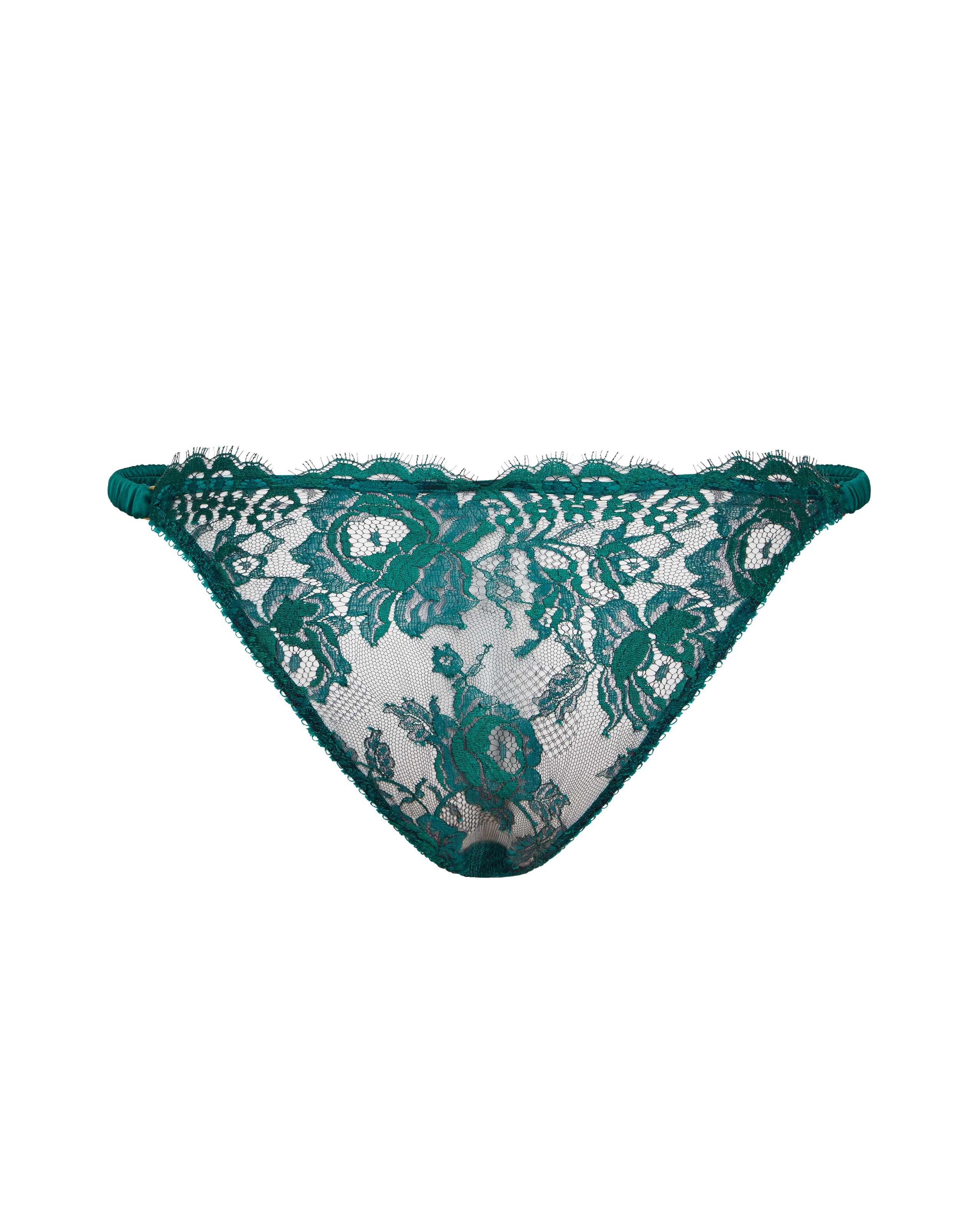 Зеленые классические трусы Solanna: кружево Leavers с цветочным узором, ажурный край с «ресничками». Шелковая подкладка спереди и ластовица, шелковые боковины. Прозрачная спинка. Идеальная пара к бюстгальтеру Solanna.