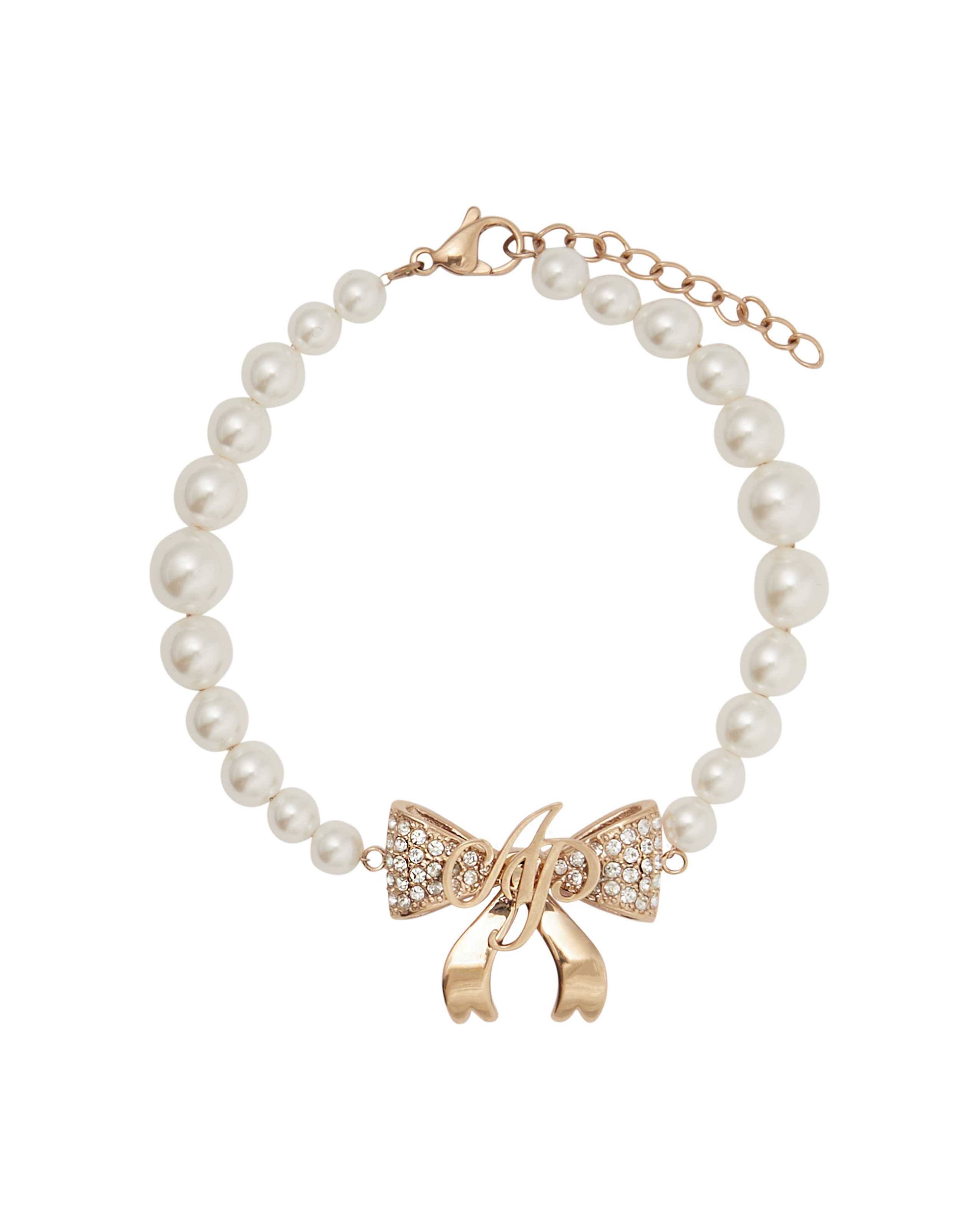 Жемчужный браслет Brady легко подстраивается по руке. С бантом в розово-золотом цвете, украшенном кристаллами и логотипом AP, он станет заметной деталью в дуэте с ожерельем.