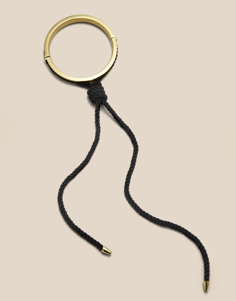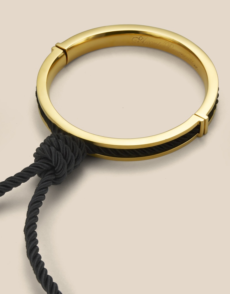 Острые ощущения начинаются вместе с крайне провокационной и абсолютно роскошной коллекцией браслетов и чокеров Xena, созданной для постельных игр. Чокер выполнен из блестящего позолоченного цинка и украшен внутри гравировкой с логотипом Agent Provocateur. Спиралевидный канат с золотыми наконечниками дополнен узлами, которые позволяют его легко затягивать и распускать.