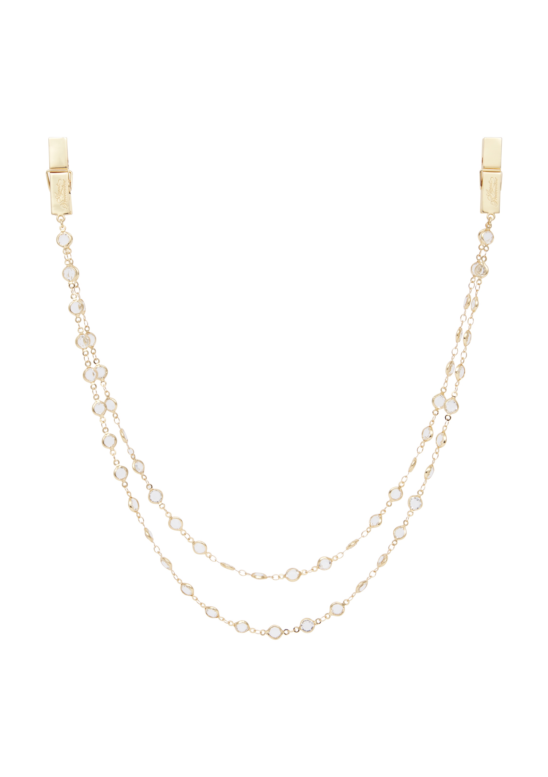Накладки Luxie с гравировкой Agent Provocateur соединены цепочкой с кристаллами и покрыты позолотой. Носи их соло или как часть вечернего комплекта.