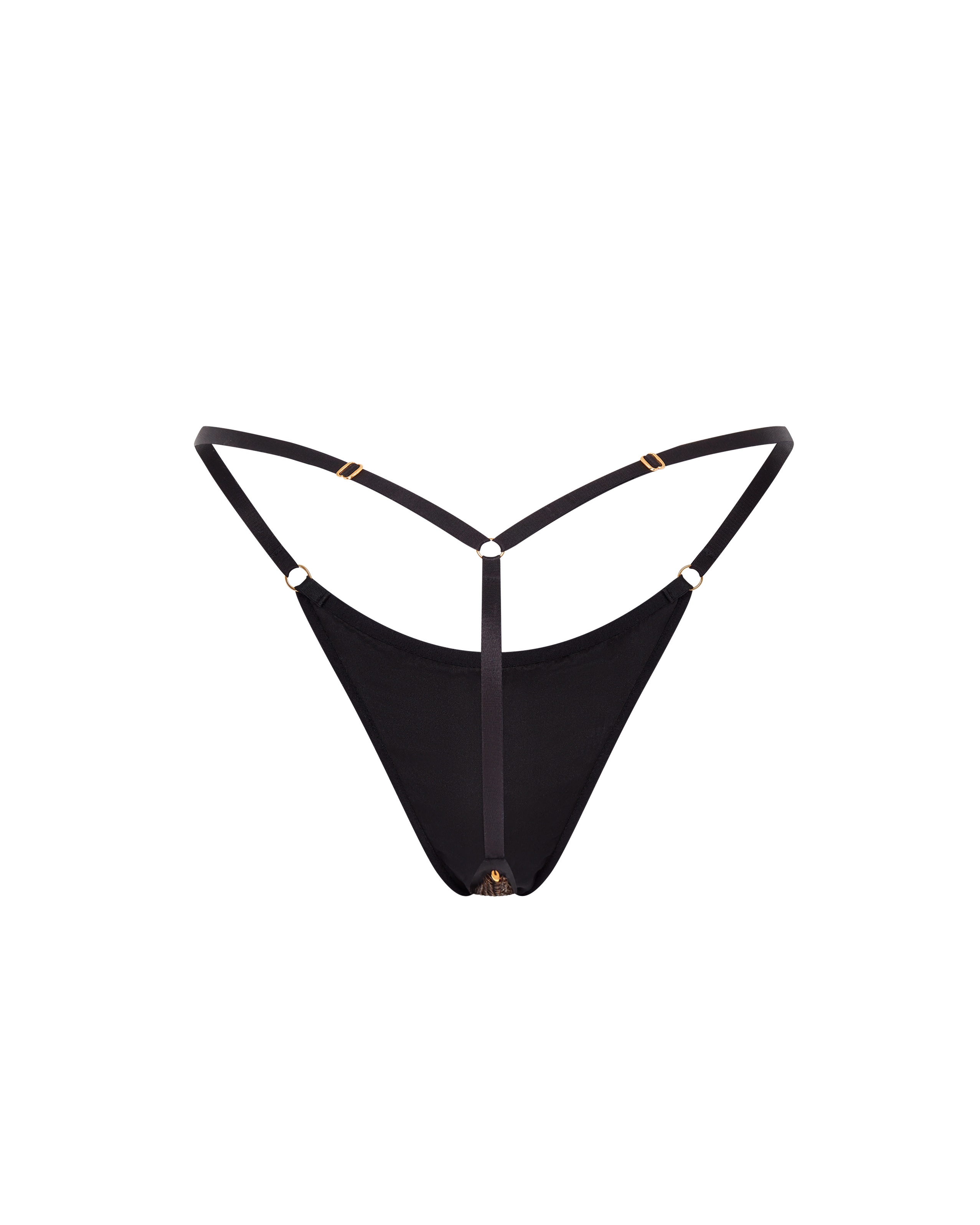 Коллекция Anniah представлена золотистыми стрингами с эффектной ручной вышивкой пайетками, которая добавляет образу праздничный блеск. Регулируемые ремешки обеспечивают комфорт и позволяют добиться идеальной посадки.
